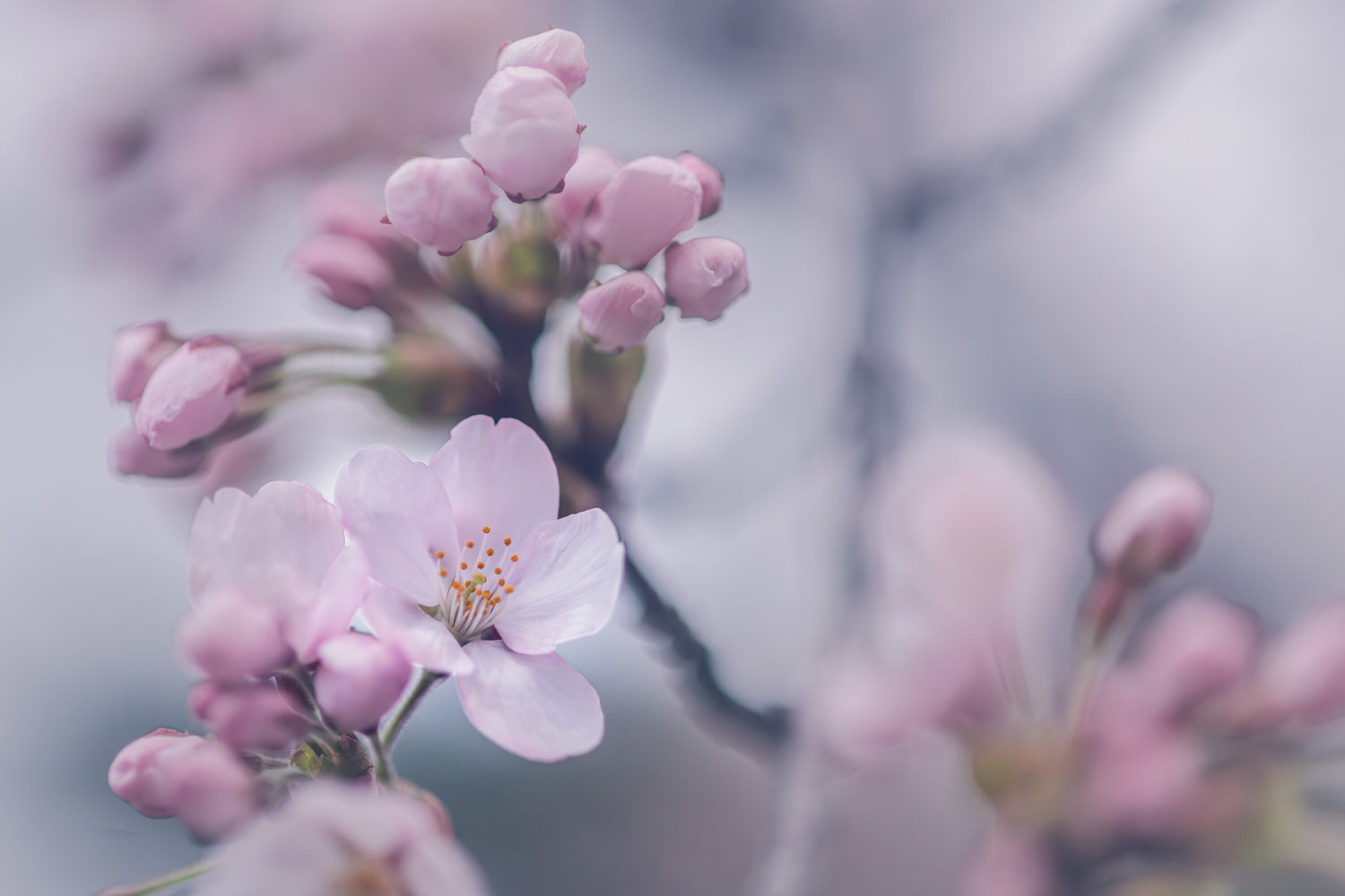 花春の訪れを告げる桜の蕾と花が、淡い光の中で静かに咲き誇り、柔らかなピンクのグラデーションとぼかしの効いた背景が、幻想的で優しい空気をまとい、心を穏やかにし日常にそっと彩りを添える様な作品として仕上げました。
