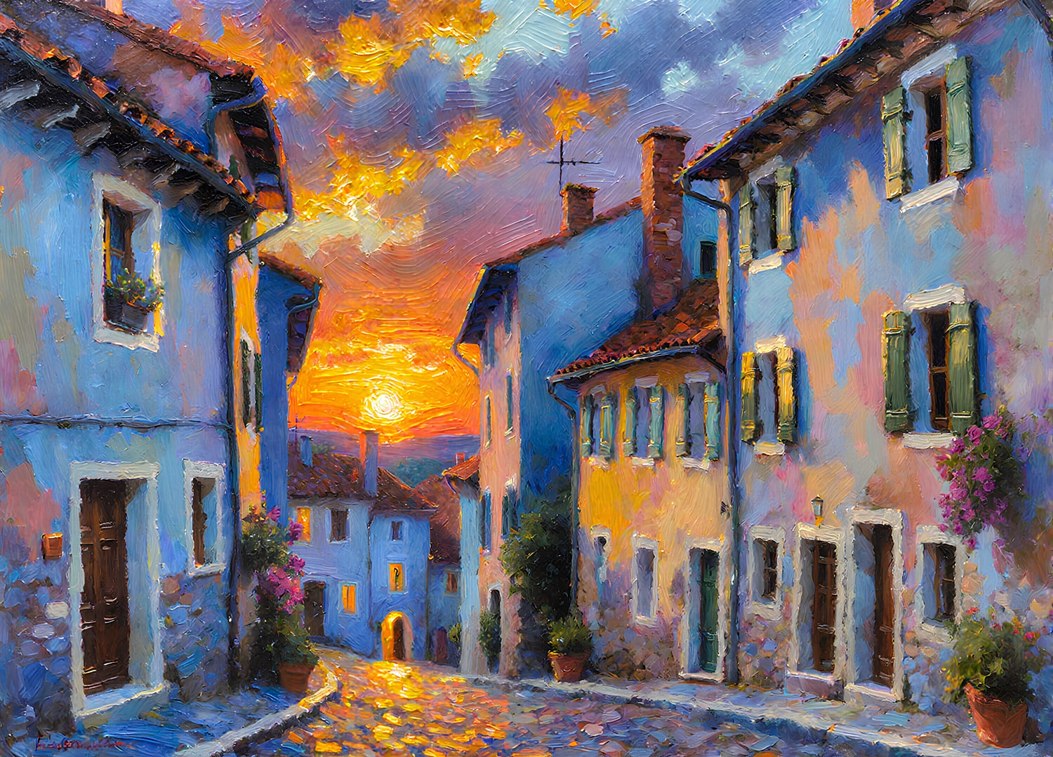 Dramatic sunset in a small European town