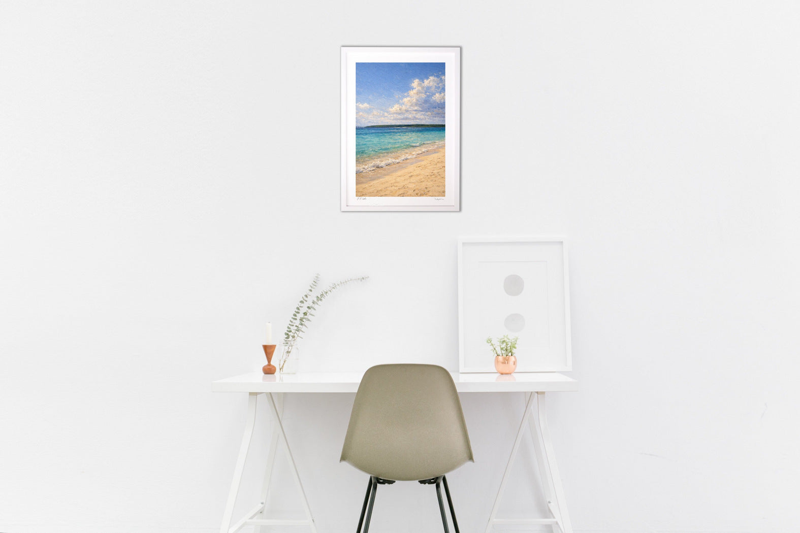 The tranquil seaside scene, with nothing added and nothing subtracted, brings a sense of freshness and security to the space, offering a little respite from everyday life.