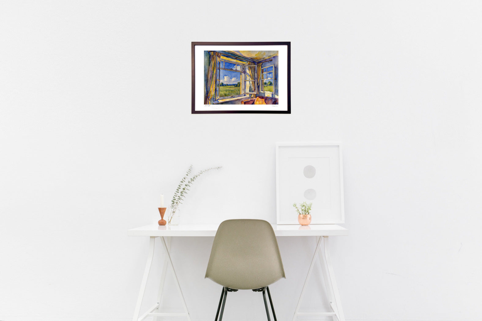 The frame color will be the same as the artwork image. You can change it if you wish. You can choose from white, natural, brown, or black. If you have a preference, please write "XX frame desired" in the comments section when placing your order.
