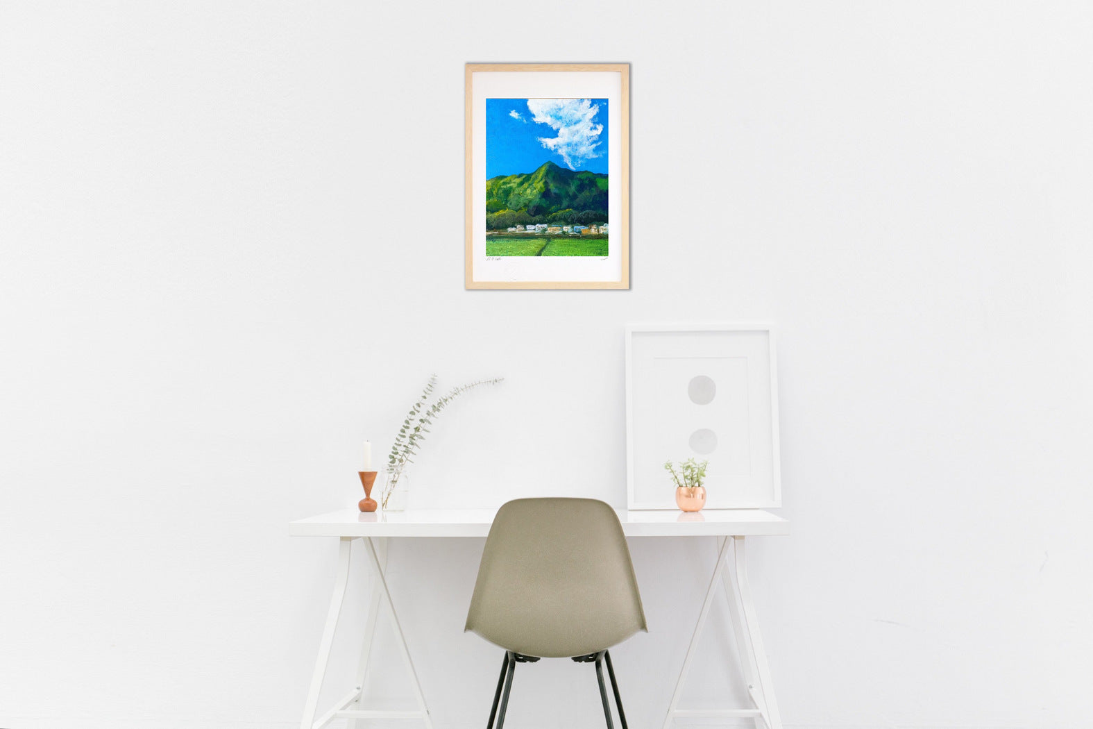 This frame is made from natural wood. The natural finish does not obscure the wood grain. The simple color and shape make the picture stand out. This is a classic frame that suits modern homes well. Developed in collaboration with a frame manufacturer. This is an Ayuwara original frame.