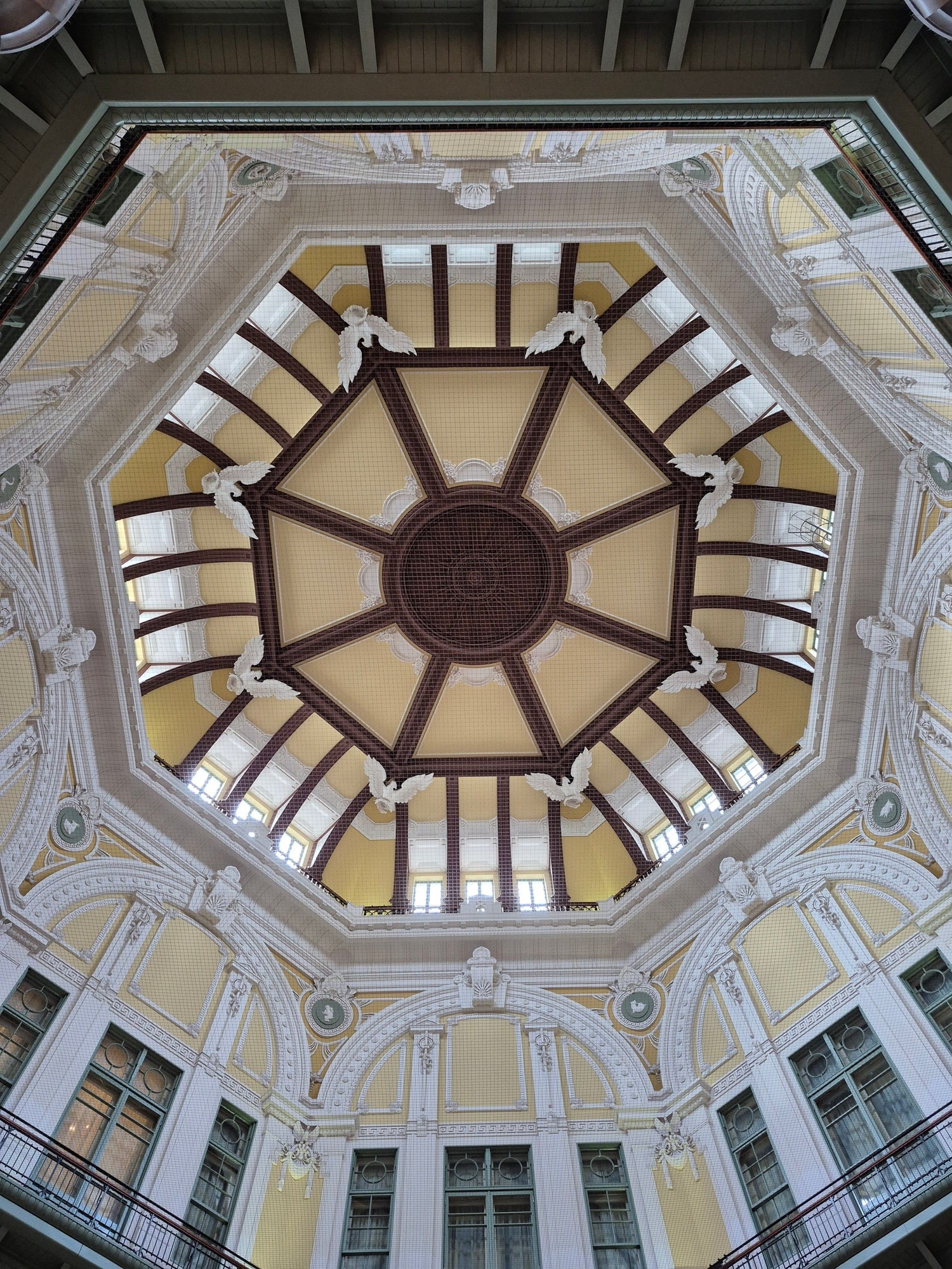 The art on the ceiling welcomes you.
