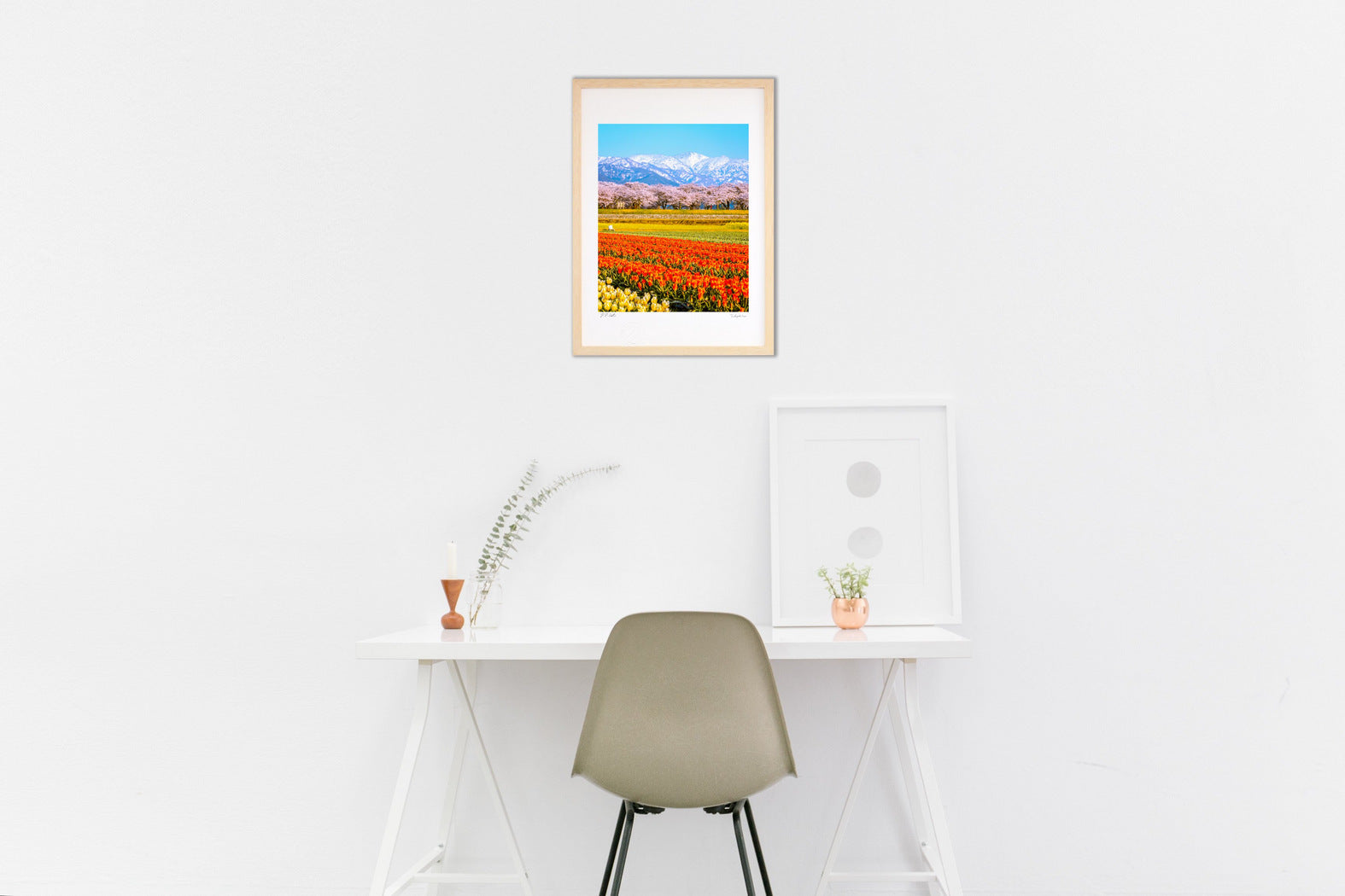 This frame is made from natural wood. The natural finish does not obscure the wood grain. The simple color and shape make the picture stand out. This is a classic frame that suits modern homes well. Developed in collaboration with a frame manufacturer. This is an Ayuwara original frame.