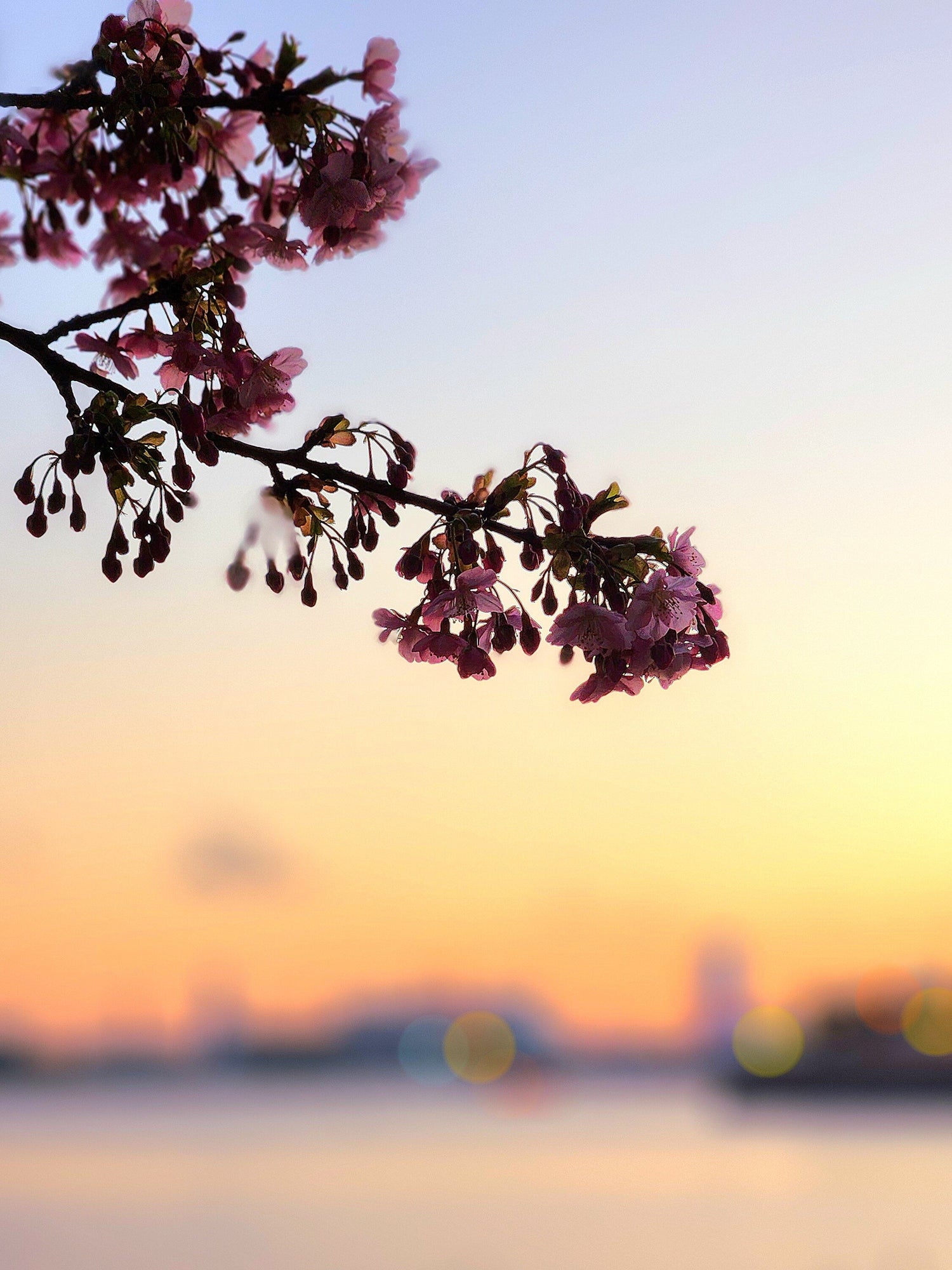 Kawazu cherry blossoms blooming at Odaiba Seaside Park.