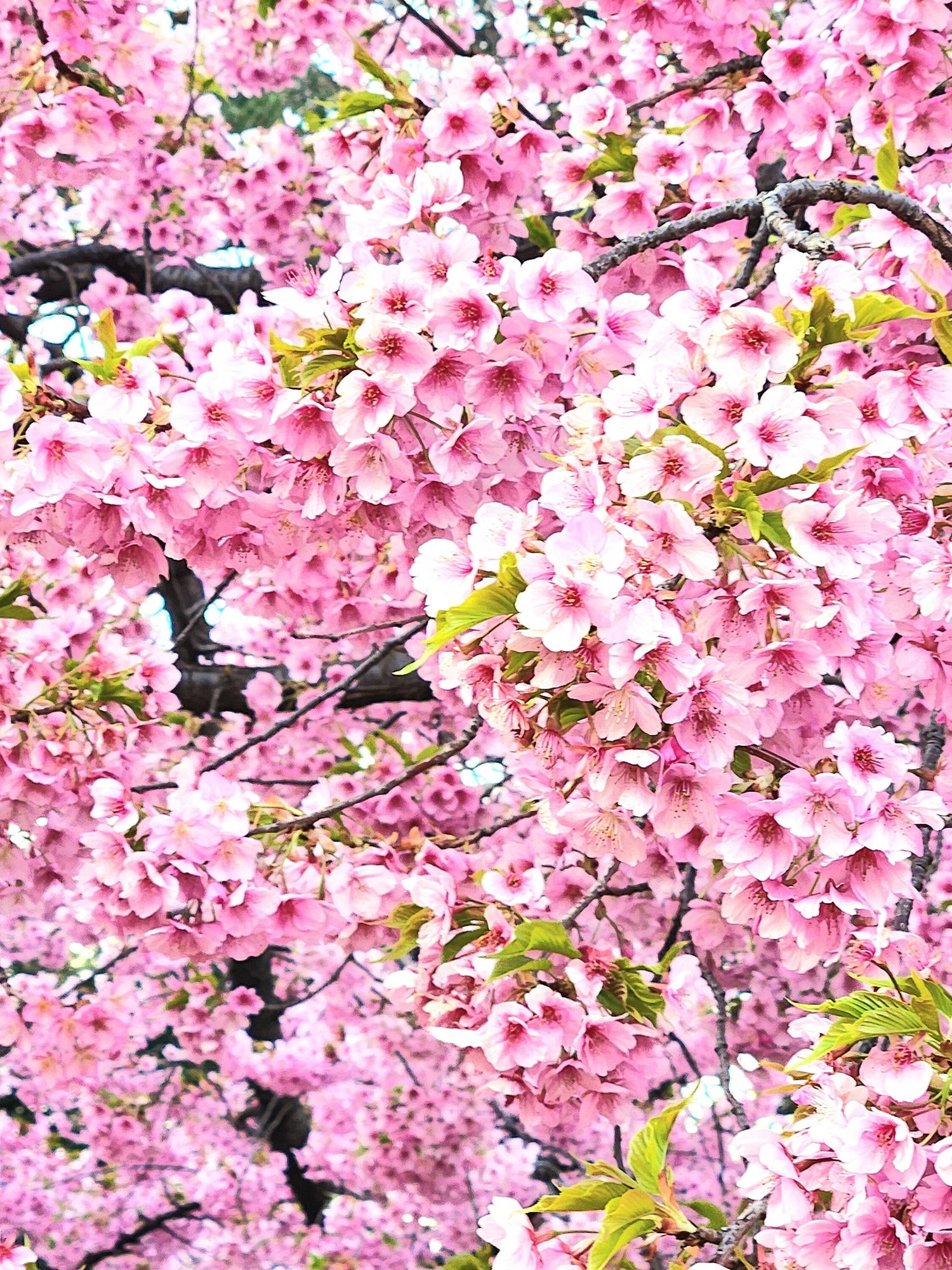 The lush Kawazu cherry blossoms are so cute and relaxing.