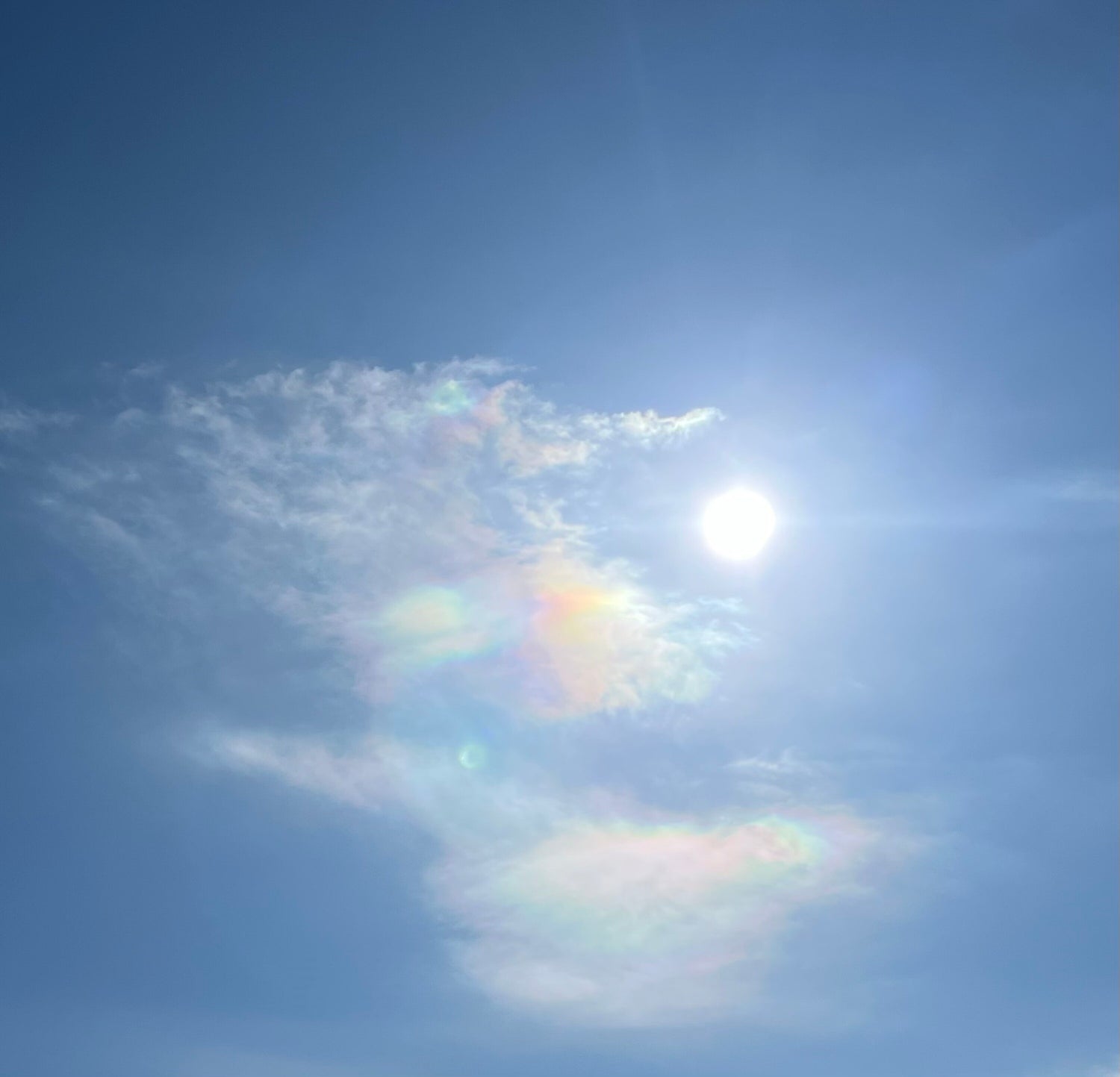 When I was hanging out the laundry on my daily balcony at home, I happened to look up at the sky and saw a rainbow cloud that looked like a coiled dragon, so I took a picture.