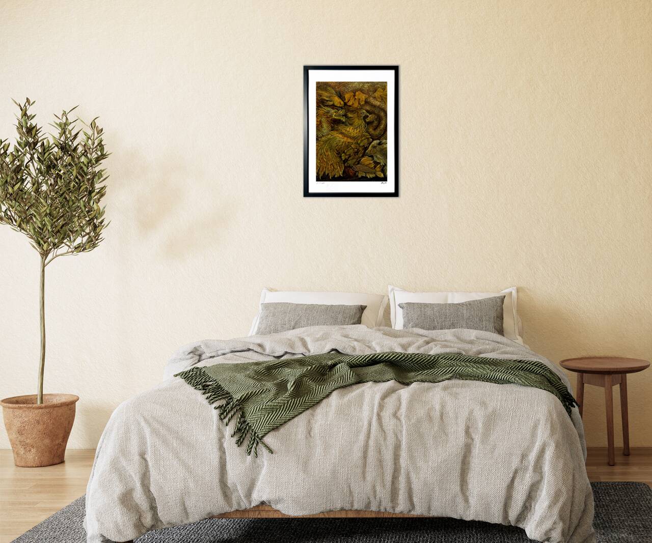 The frame color will be the same as the artwork image. You can change it if you wish. You can choose from white, natural, brown, or black. If you have a preference, please write "XX frame desired" in the comments section when placing your order.