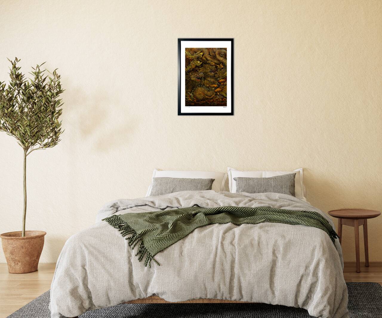 The frame color will be the same as the artwork image. You can change it if you wish. You can choose from white, natural, brown, or black. If you have a preference, please write "XX frame desired" in the comments section when placing your order.