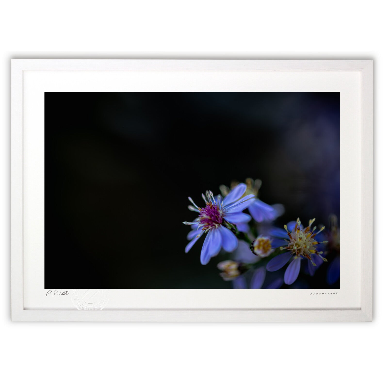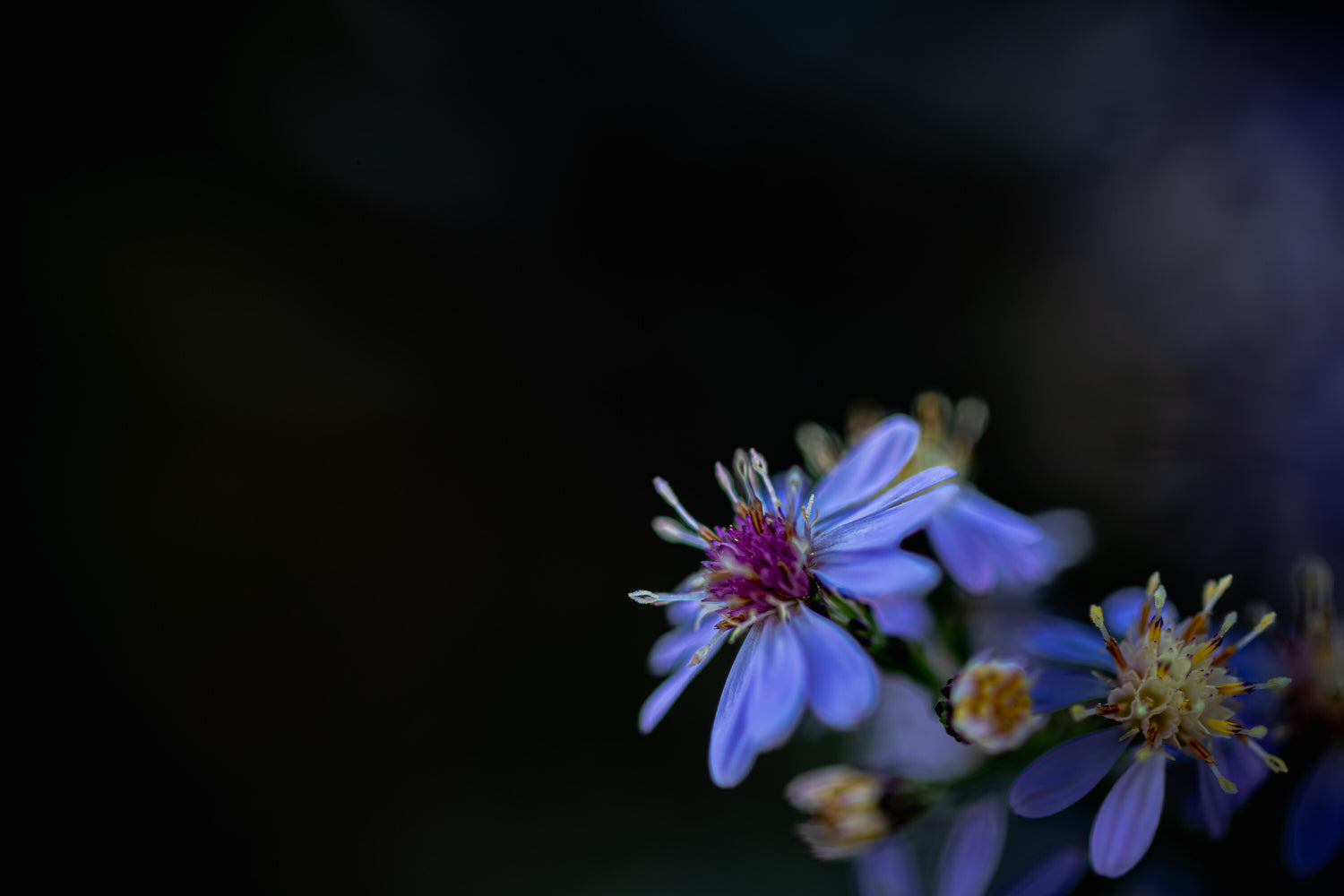 日が落ちそうな夕方、絞り込んで撮影したことで、花々が浮き立ちシックな表現になり、周辺減光の効果により副題としての闇が引き立つ一枚となりました。