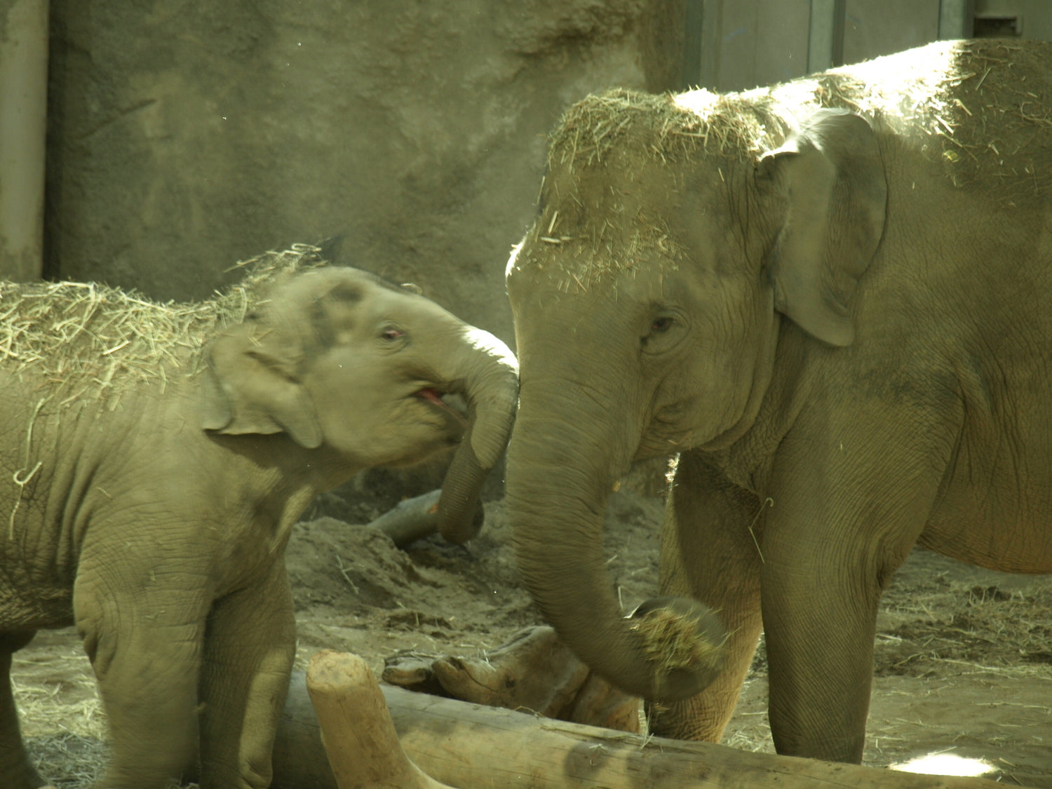 母象にぴったり寄り添う1歳の子象は、まるで笑っているかのような表情。