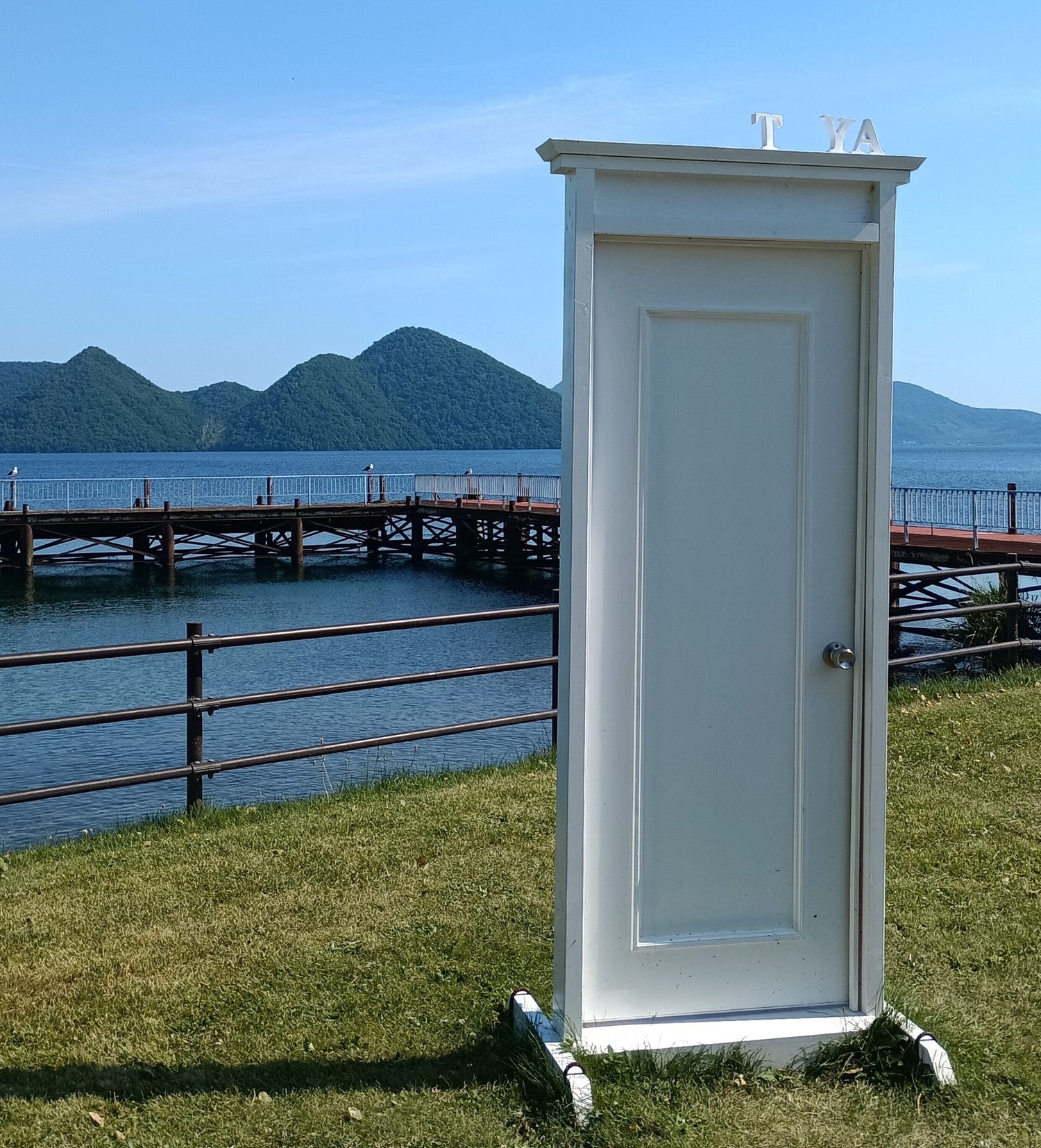 真夏の青空の下にある、洞爺湖のどこでもドアを開けてみたくなりました。