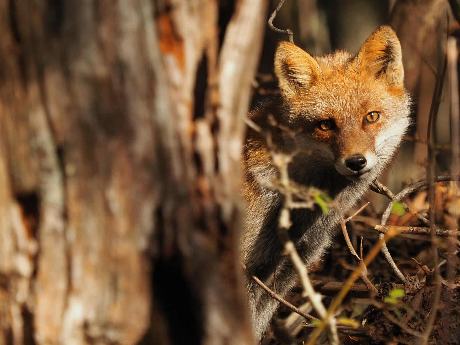 東祖谷の森でキツネの兄弟がおり、一匹はすぐに逃げたが、もう一匹は興味深々で逃げず、すこし対峙して逃げました。