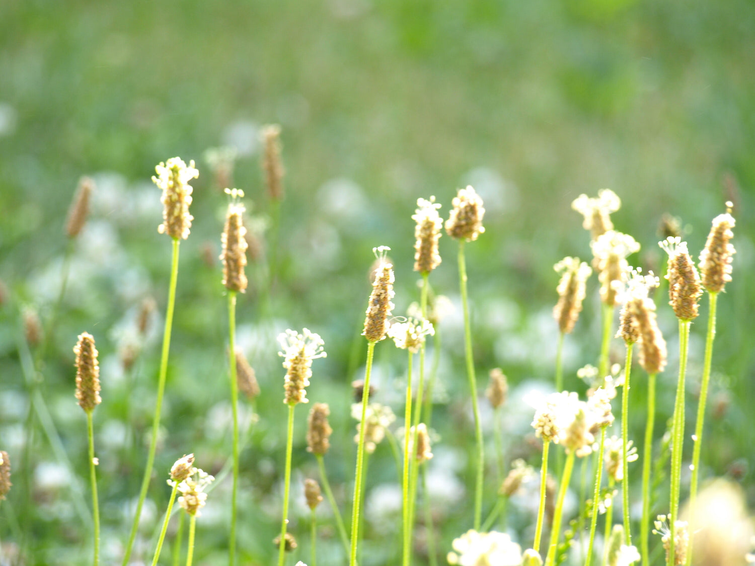 光をまとったグリーンの野草たちが、静かに微笑むように咲いている。