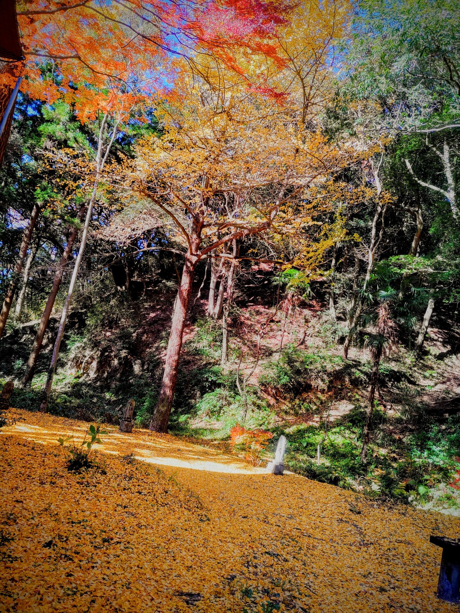 お寺の境内を散歩していたら、裏にある石仏に光がさしていた