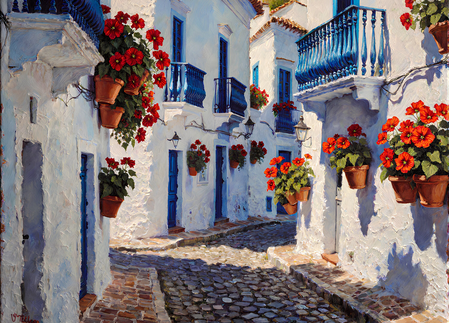 アンダルシア地方の白壁の村の通り