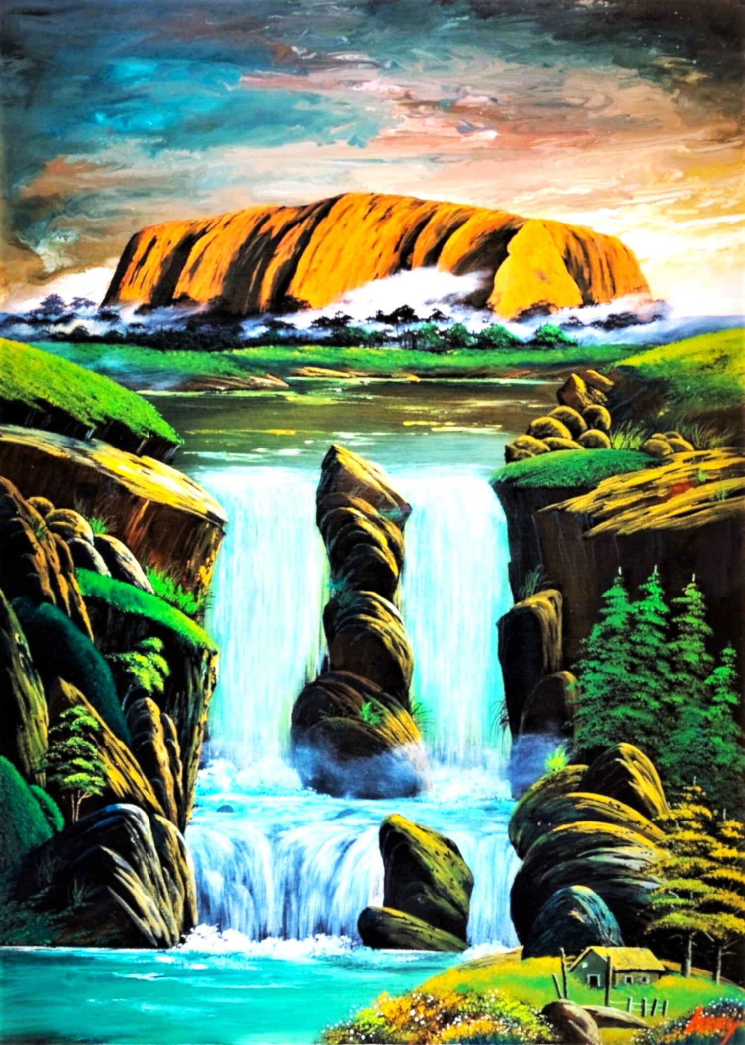 この星のウルルは・・・緑に覆われた大きな滝がある。