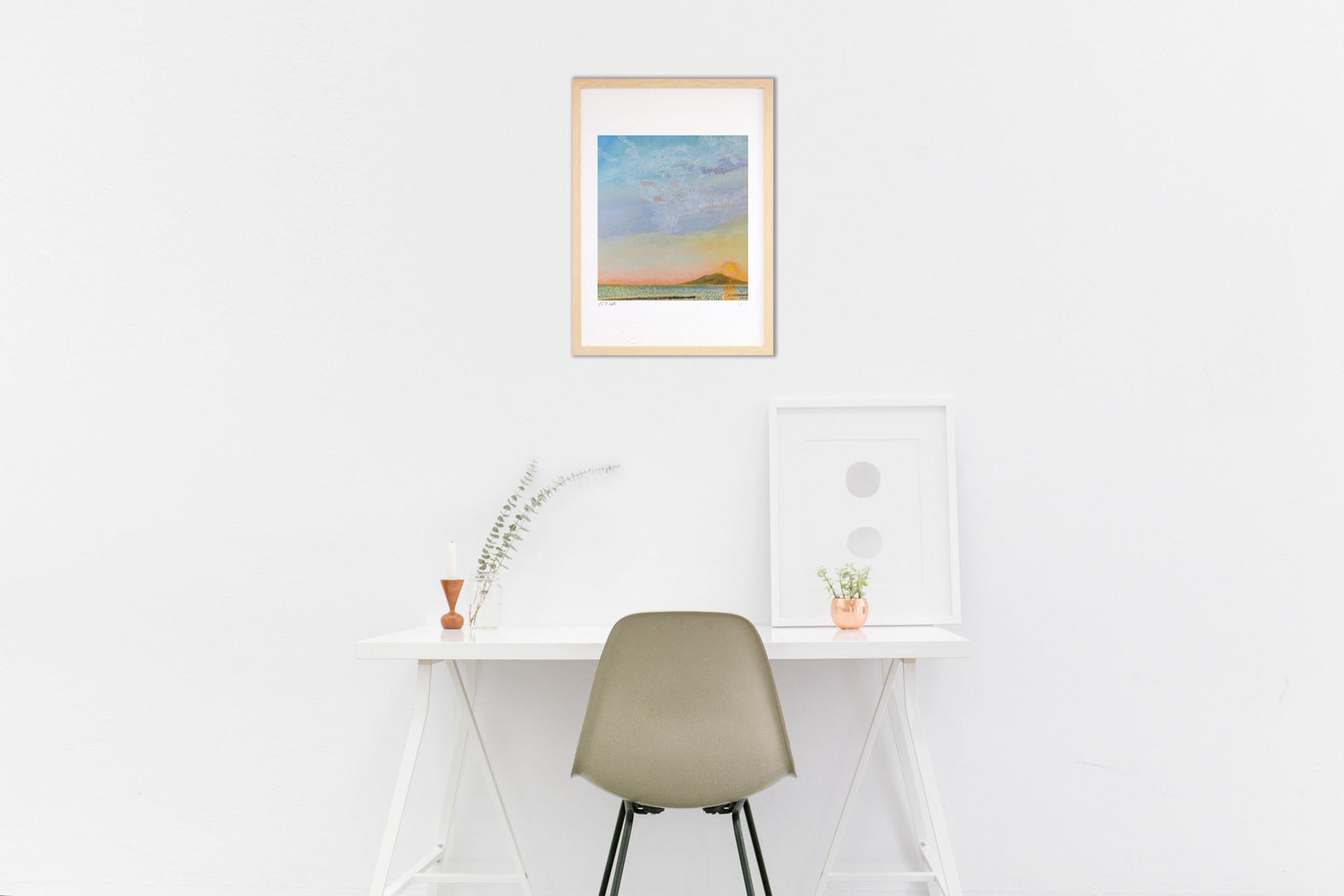 フレームカラーは作品画像の額縁でお届けします。 ご希望があれば変更も可能。ホワイト・ナチュラル・ブラウン・ブラックからお選び頂けます。ご希望の場合は、ご注文時備考欄に「○○フレーム希望」とご記入ください。