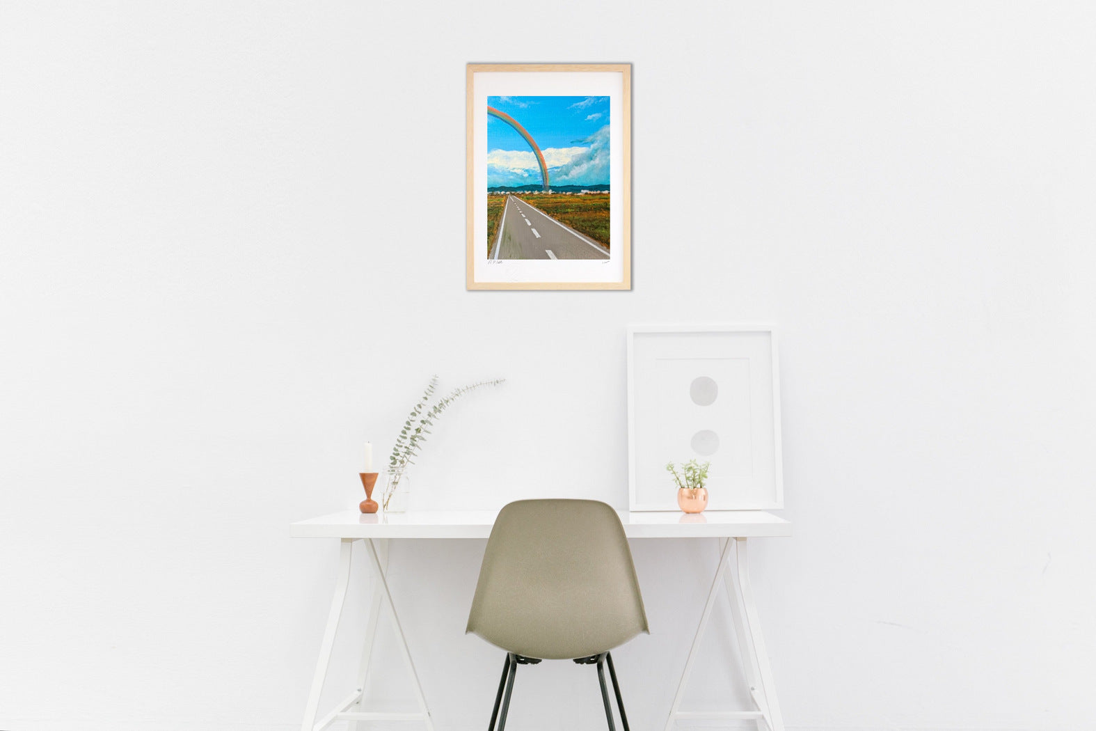 フレームカラーは作品画像の額縁でお届けします。 ご希望があれば変更も可能。ホワイト・ナチュラル・ブラウン・ブラックからお選び頂けます。ご希望の場合は、ご注文時備考欄に「○○フレーム希望」とご記入ください。