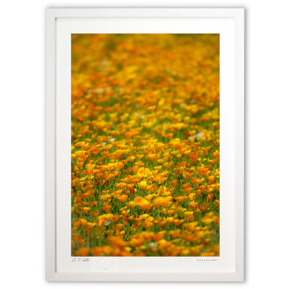 一面のポピーまさにオレンジロード、そのなかで少し大きめは花を中心として、フワリとやわらかく仕上げました。
