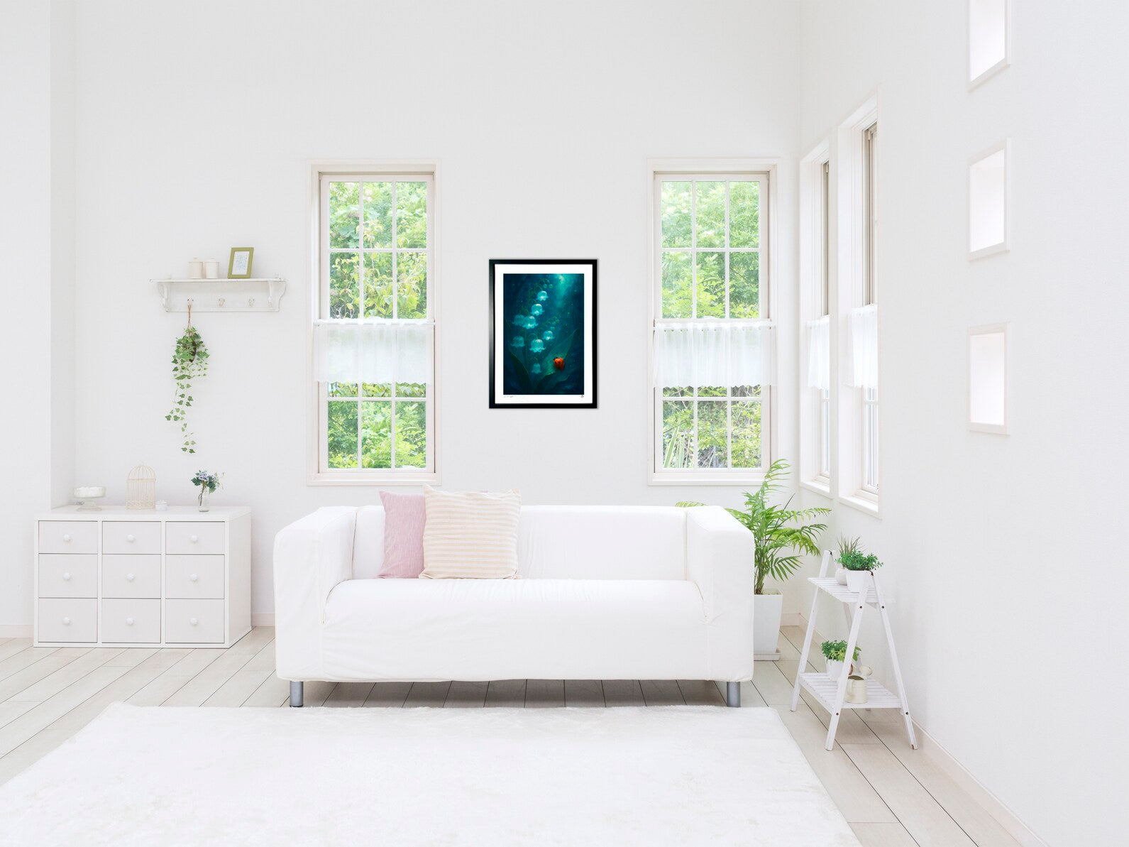 あゆわらの企画・制作・販売の作品。 画用紙のような質感の高級アート紙を採用。 発色が豊かなので繊細な色を忠実に再現。 印画紙ではないので、絵なのか写真なのか迷う不思議な印象です。 紙に光沢がなく、光を反射しないので、 蛍光灯の光で作品が見えづらくなることもありません。 色の再現性もこだわりました。 色調整は、最新技術で厳密に行うことが出来ます。正確に色を再現できるデジタル印刷で一枚一枚制作。 品質をチェックし、合格したものにあゆわらのエンボス印を入れて完成となります。