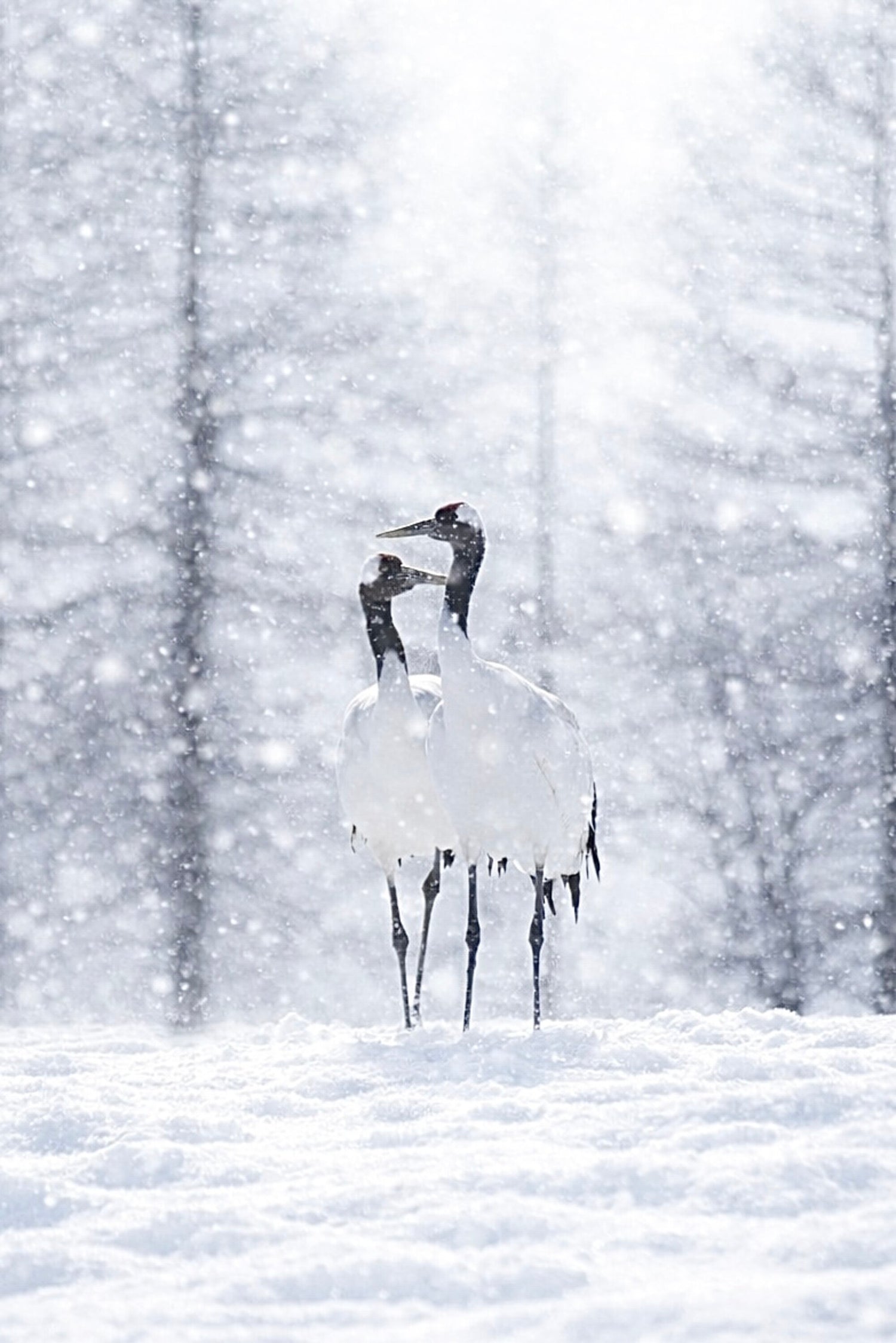 仲良く寄り添っているタンチョウです。