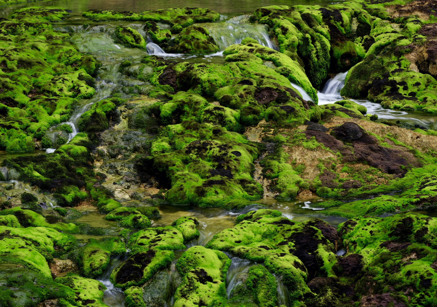 強酸性の鉱泉を好んで生育する チャツボミゴケが群生する 非常に珍しい場所である。苔の群生が美しい。