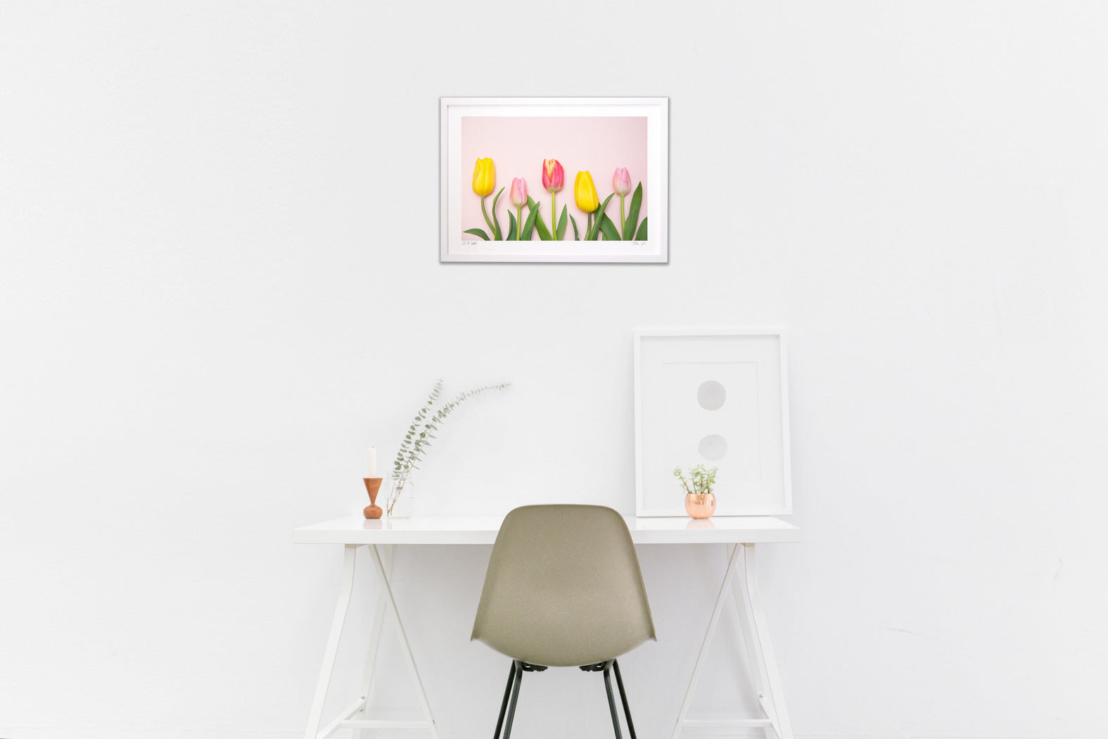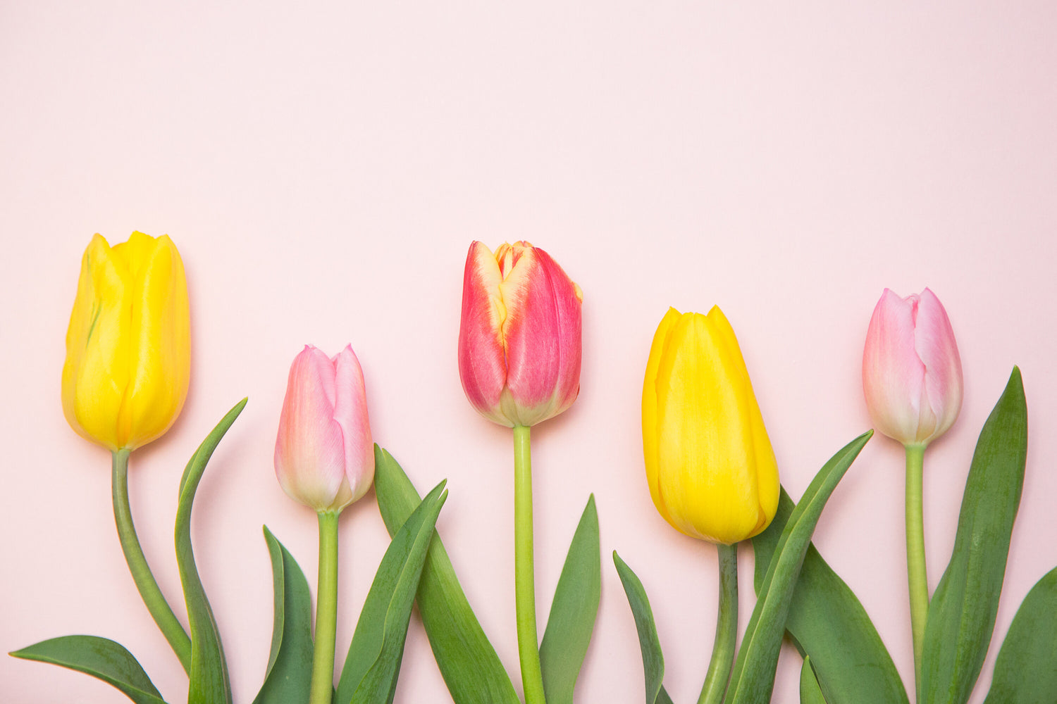 春をイメージしたピンクの背景に、チューリップを並べました。