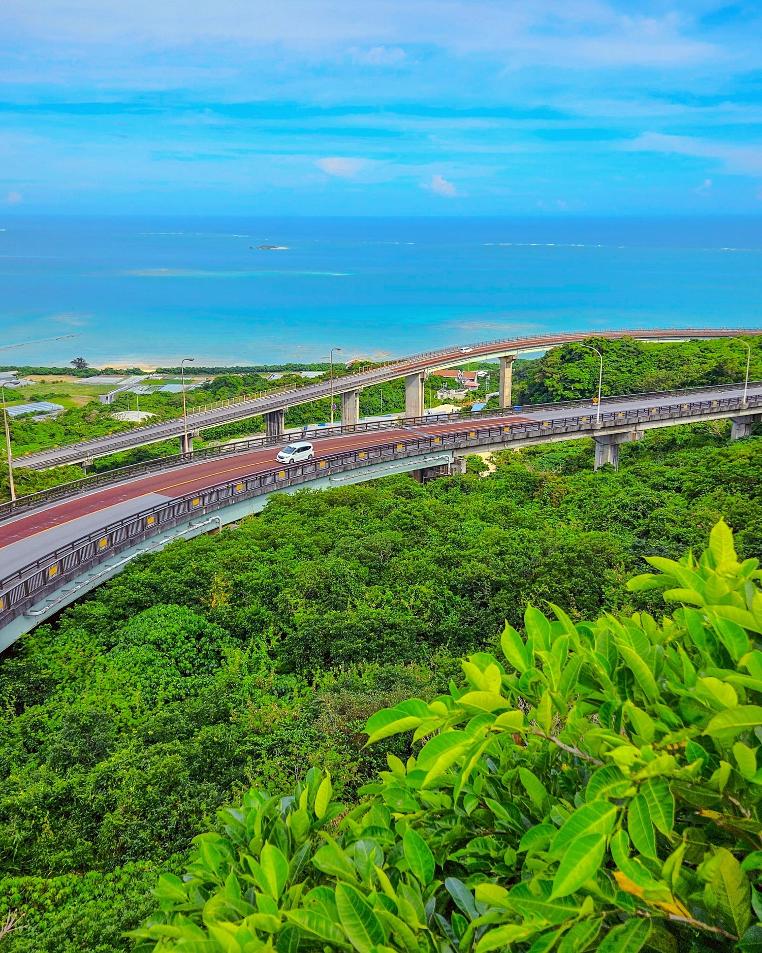 ニライカナイ橋は県道86号線から国道331号線への下り坂に架かる橋で沖縄の絶景スポットのひとつです。