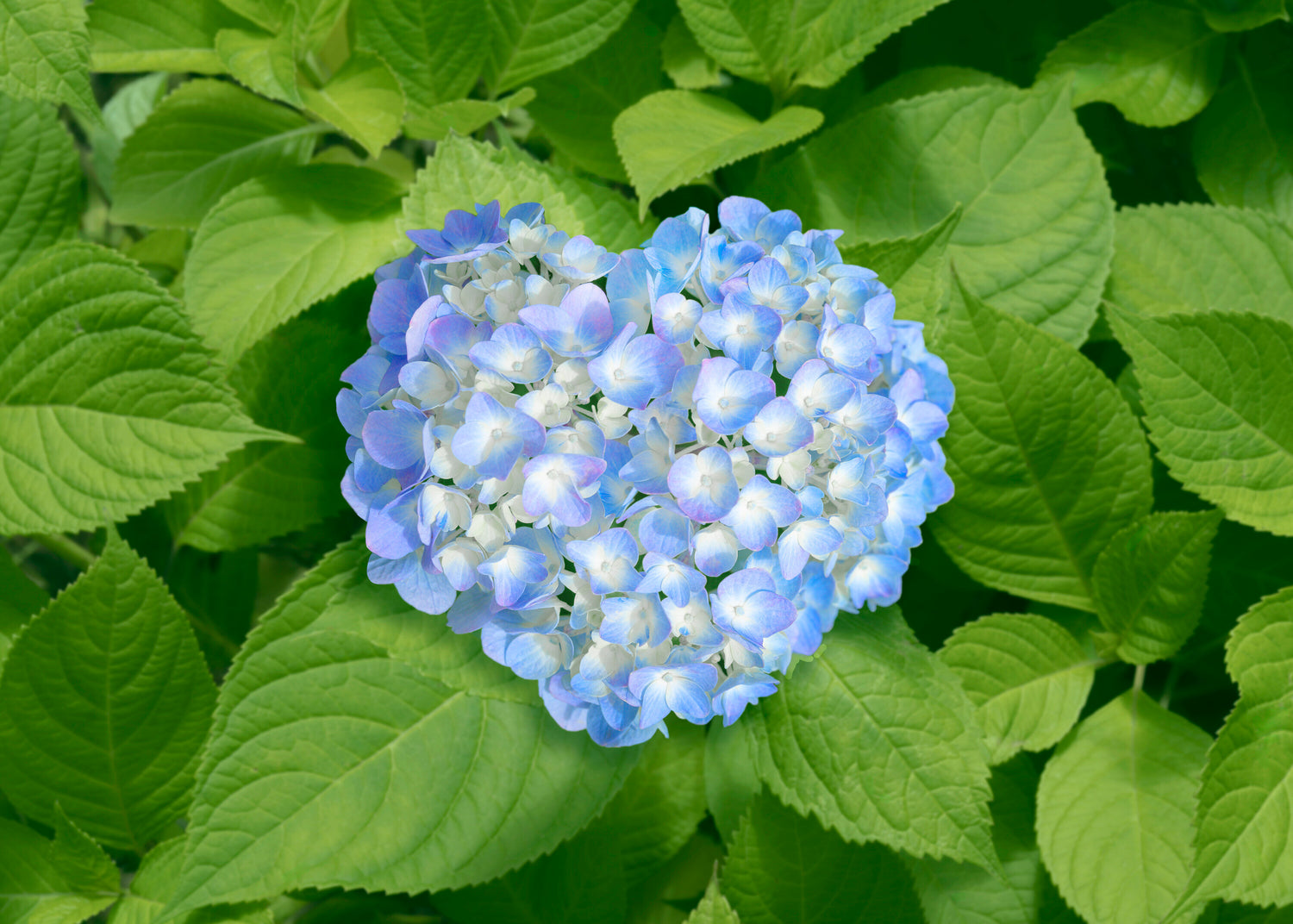 梅雨の柔らかい光にハートのあじさいが微笑んでいます