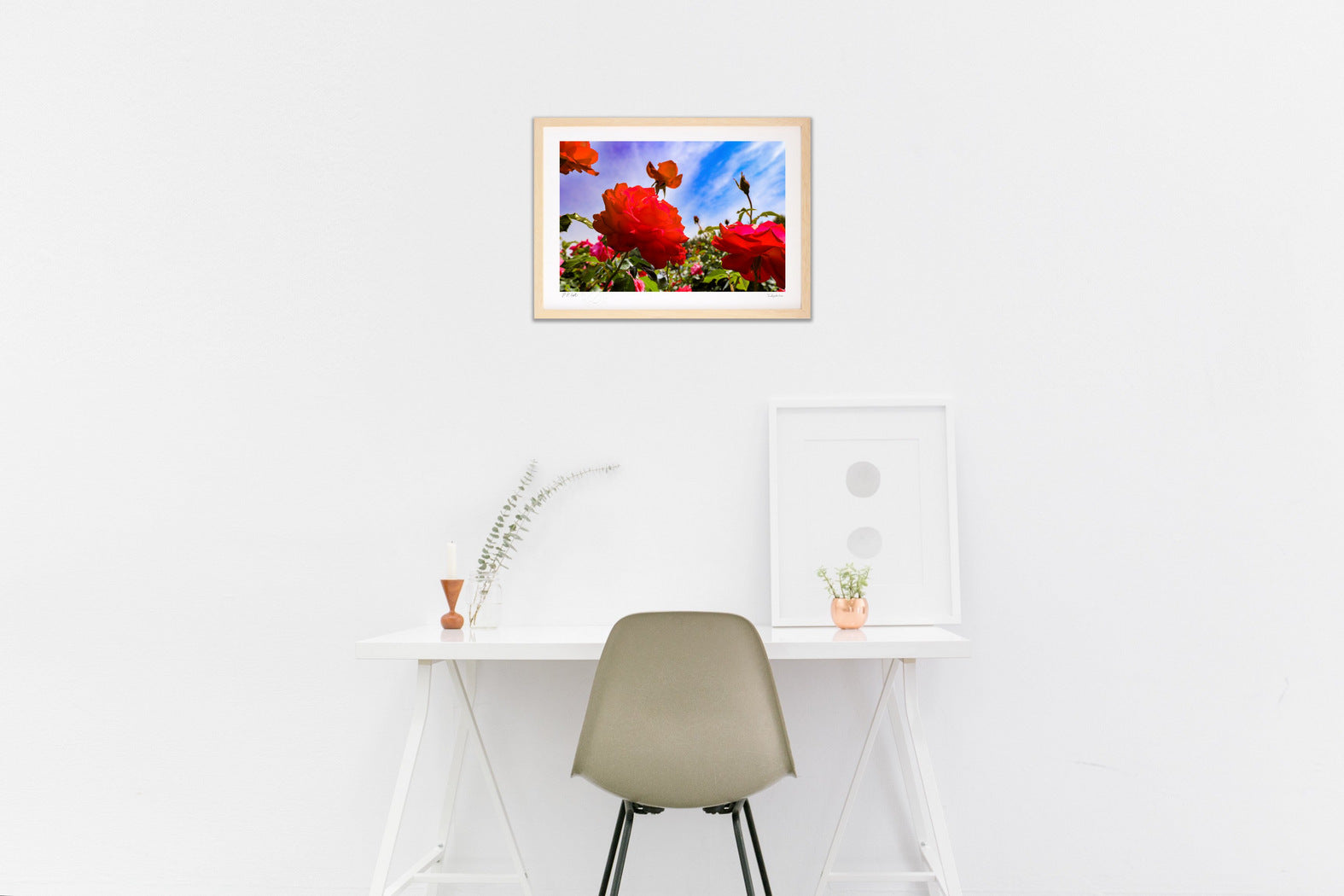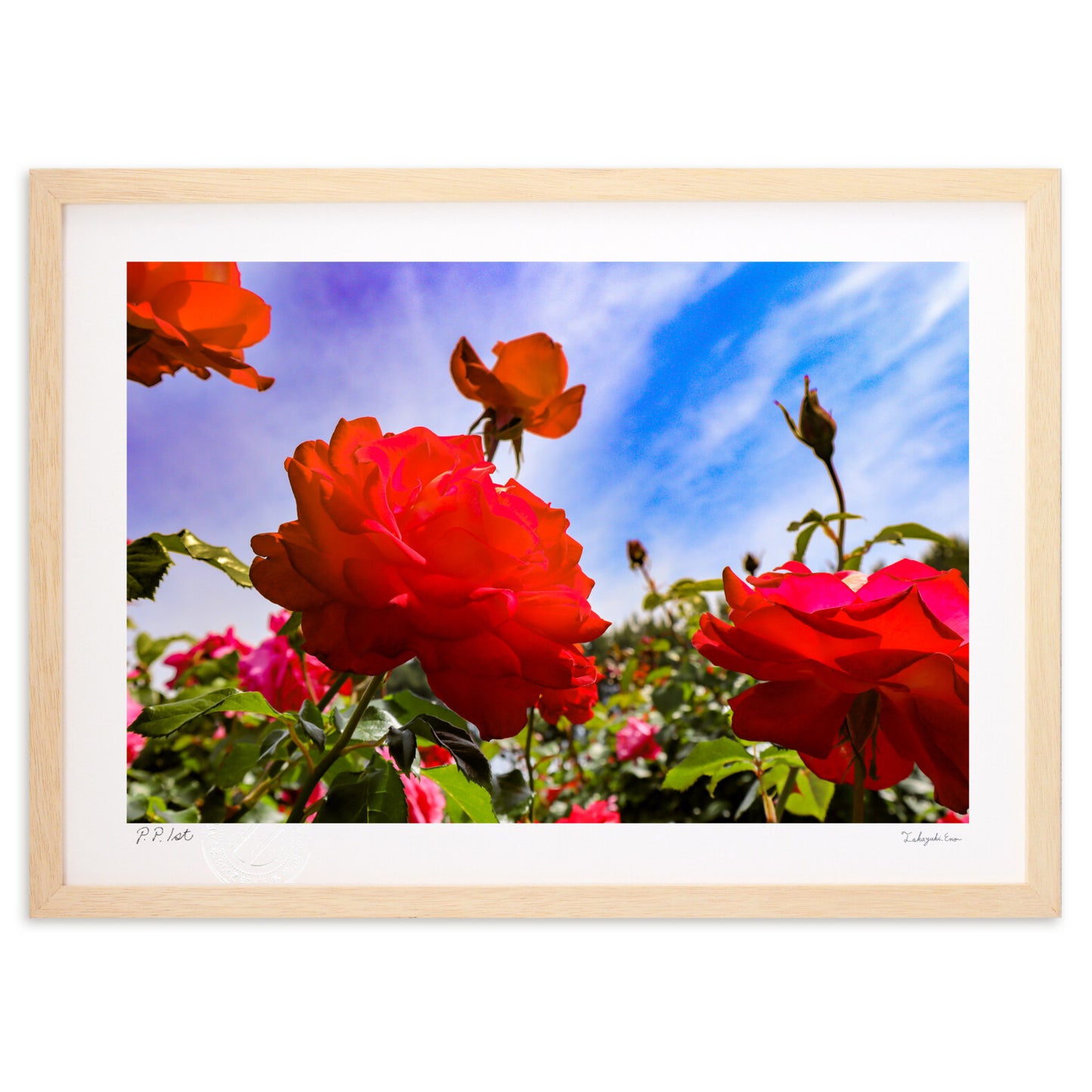 あゆわらの企画・制作・販売の作品。 画用紙のような質感の高級アート紙を採用。 発色が豊かなので繊細な色を忠実に再現。 印画紙ではないので、絵なのか写真なのか迷う不思議な印象です。 紙に光沢がなく、光を反射しないので、 蛍光灯の光で作品が見えづらくなることもありません。 色の再現性もこだわりました。 色調整は、最新技術で厳密に行うことが出来ます。正確に色を再現できるデジタル印刷で一枚一枚制作。 品質をチェックし、合格したものにあゆわらのエンボス印を入れて完成となります。