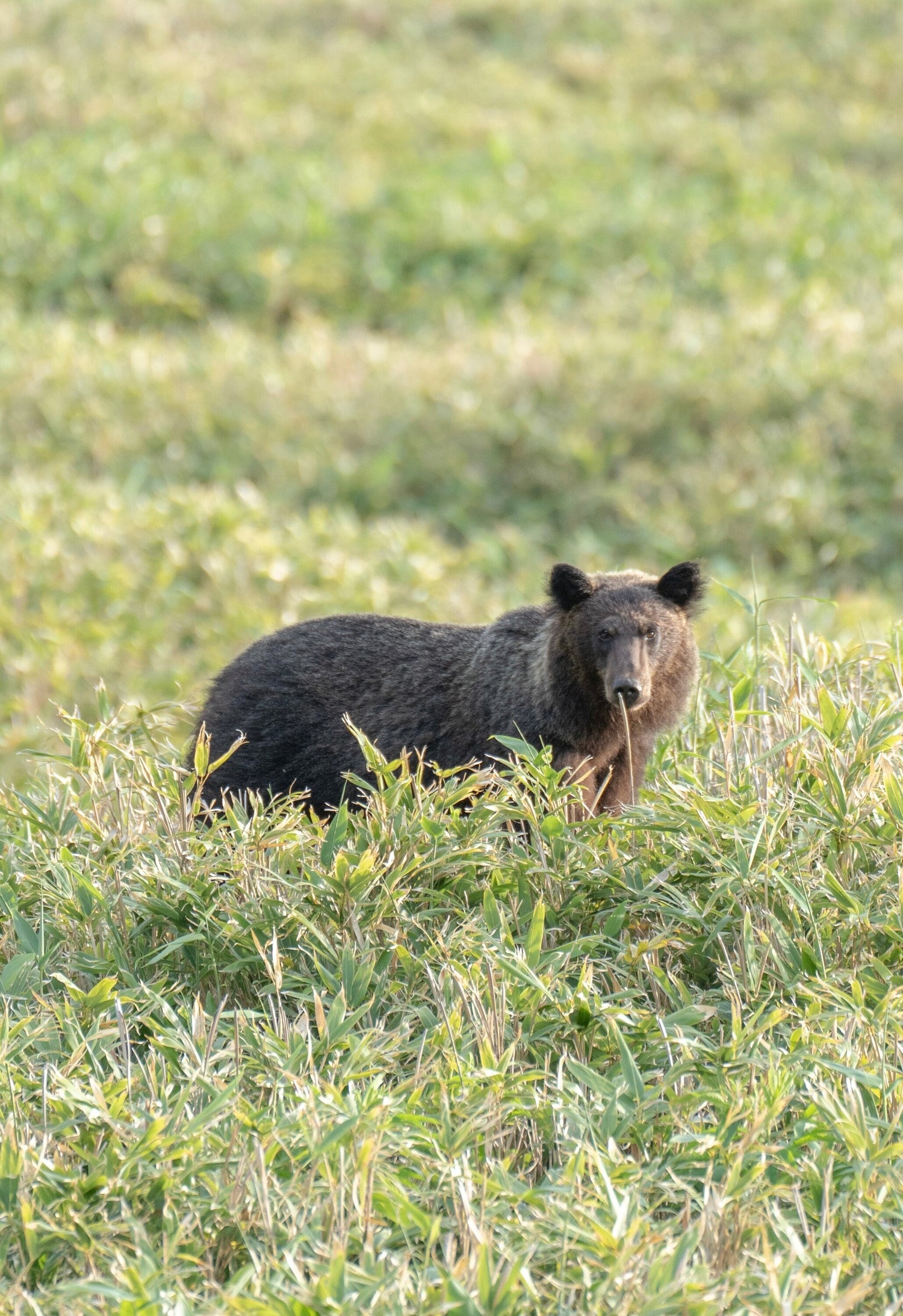 北海道で出会った野生のヒグマです。こちらを向いていて、迫力がありました。安全な位置から撮影しております。