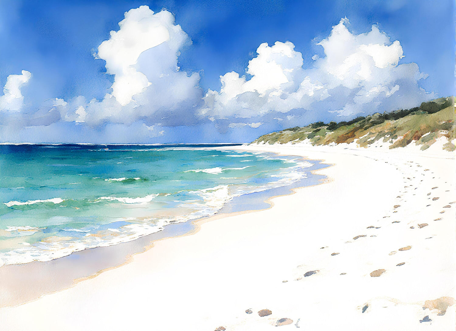 オーストラリアのホワイトヘブン・ビーチは、干潮で砂と海が大きなマーブル模様のコントラストを作ることがあります。