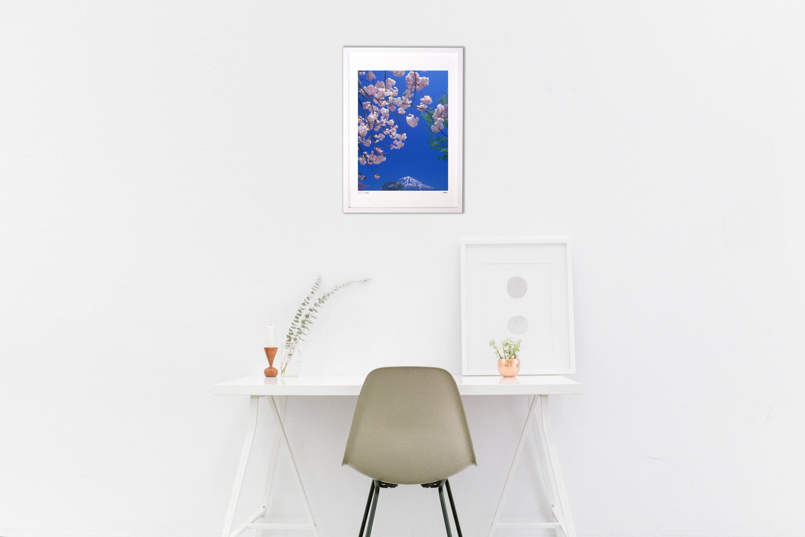 桜と富士山は 一番魅力的な光景です。また、桜の花は下を向いて咲きますので 綺麗な桜は黒くなって撮れます。そこでレフ板を三脚に取り付け 下方向からあてて 出来るだけスッキリした画面になるよう撮影しました。
