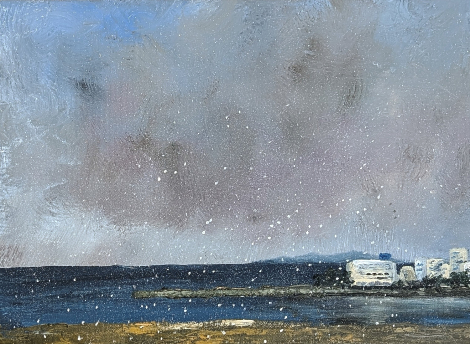 淡路島ではめったに雪は降りません。今年は全国的に雪がよく降り、淡路島にも雪雲とともに雪がちらつきました。島のリゾート地でのめずらしい景色です。