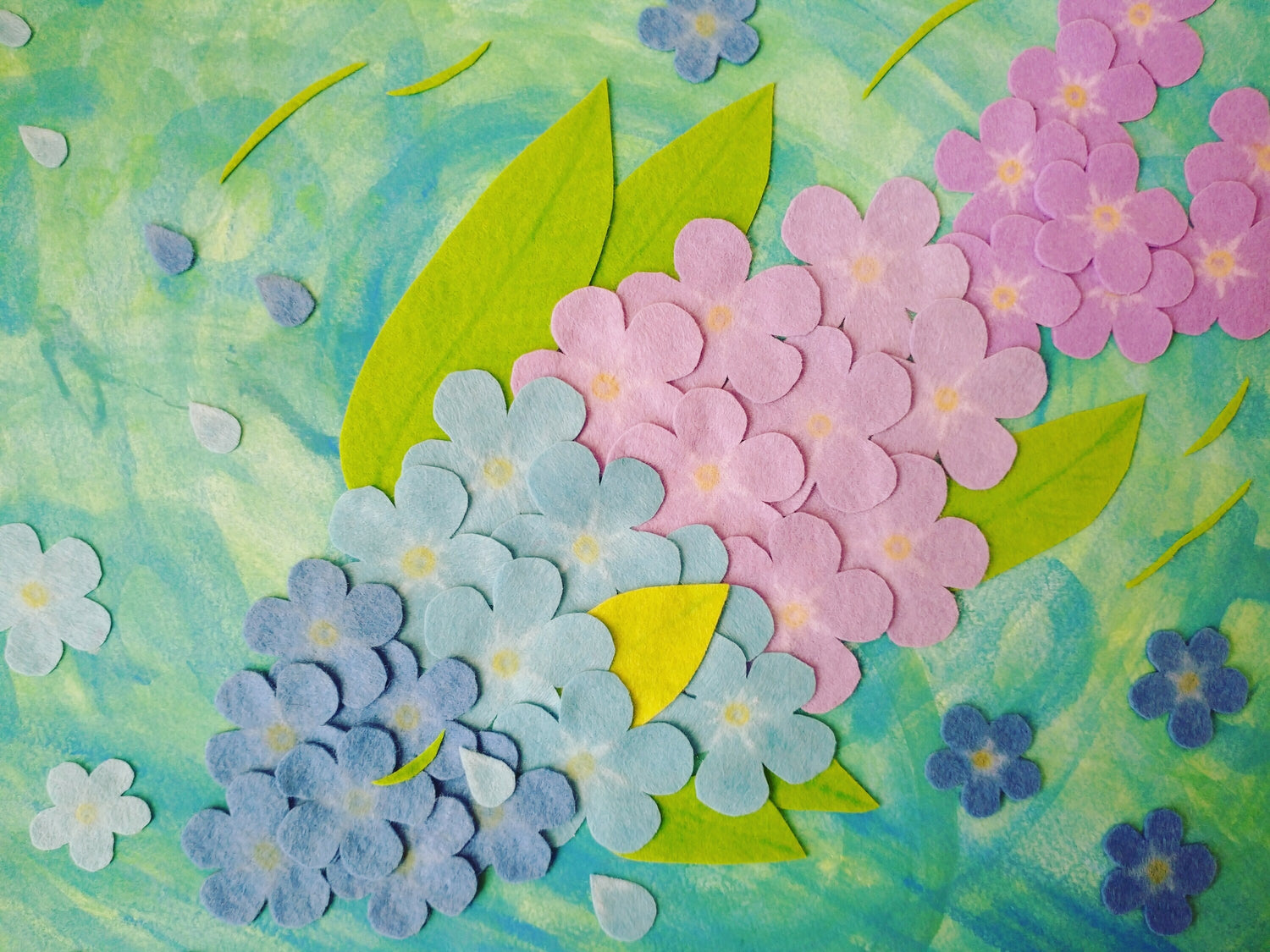 下地で塗った少し見えるアルファベットはワスレナグサの英語名が書いてあります。