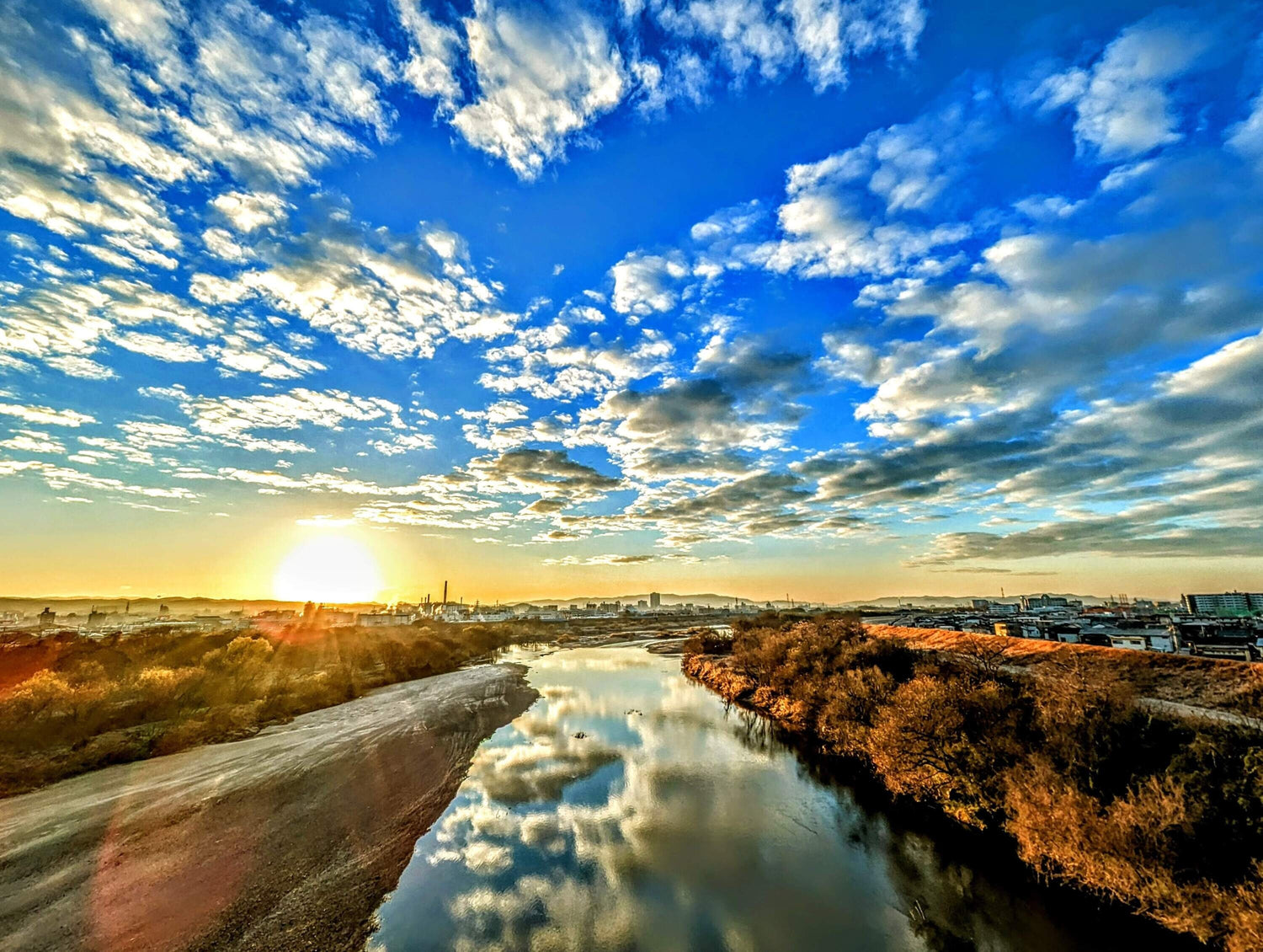 地元、岡崎市の一般道の橋の上から初日の出を見に行って時の写真です。毎年のように初日の出を見に行っており、毎年場所を変えて撮影しています。