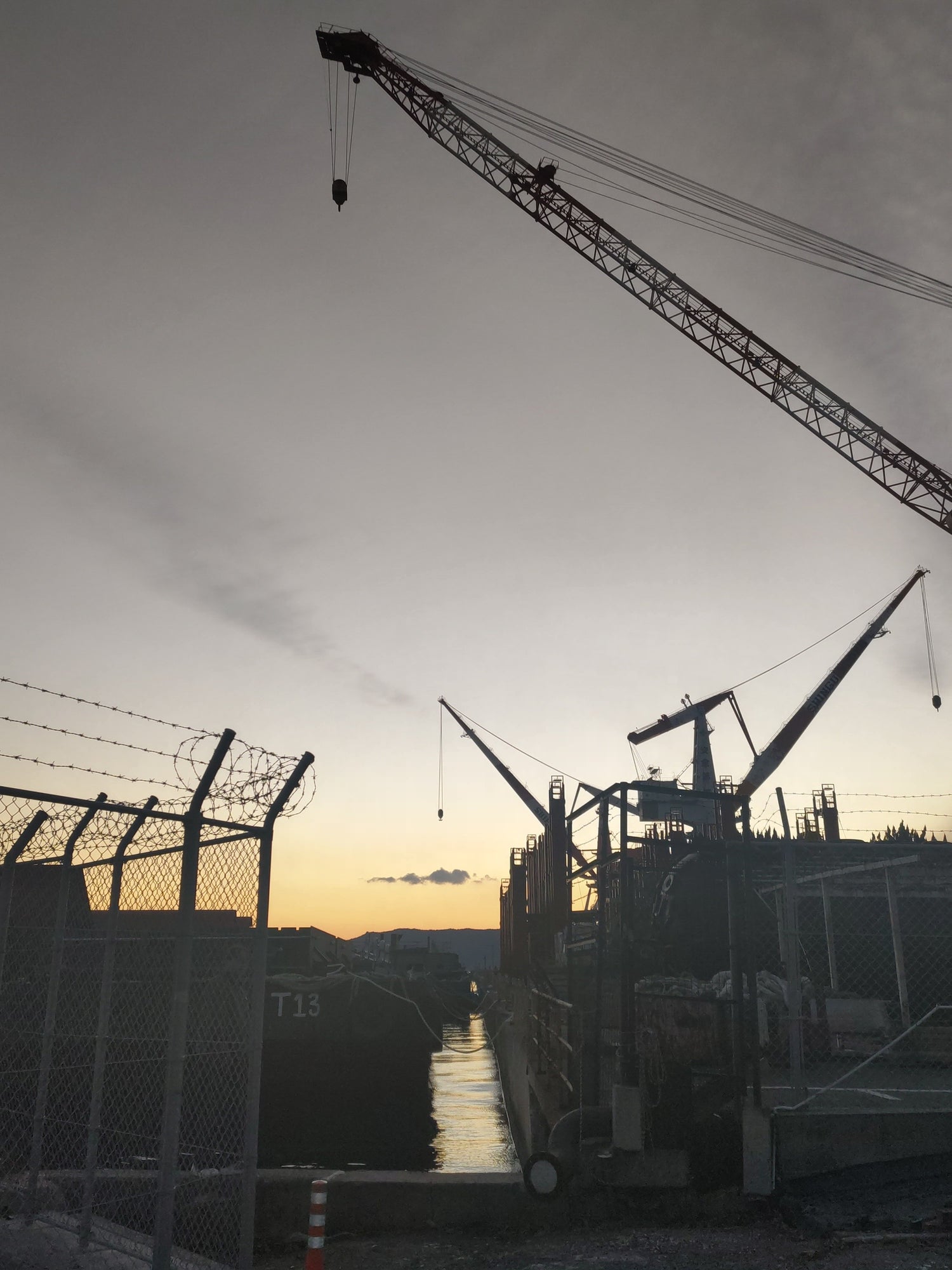 日中は波や風の音に加え、忙しなく働く人々の息遣いや大小様々な機械の音が渦巻く港町。日が暮れて今日を無事にやり終えた後の風景はどこか安堵したような穏やかさが漂っていました。