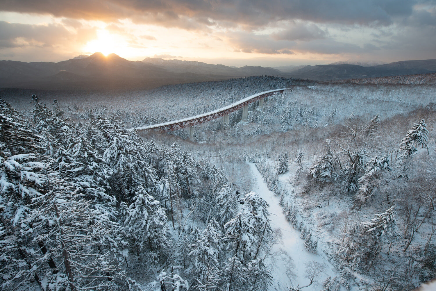 標高の高い国道からの景色で、冬はマイナス20℃以下になります。