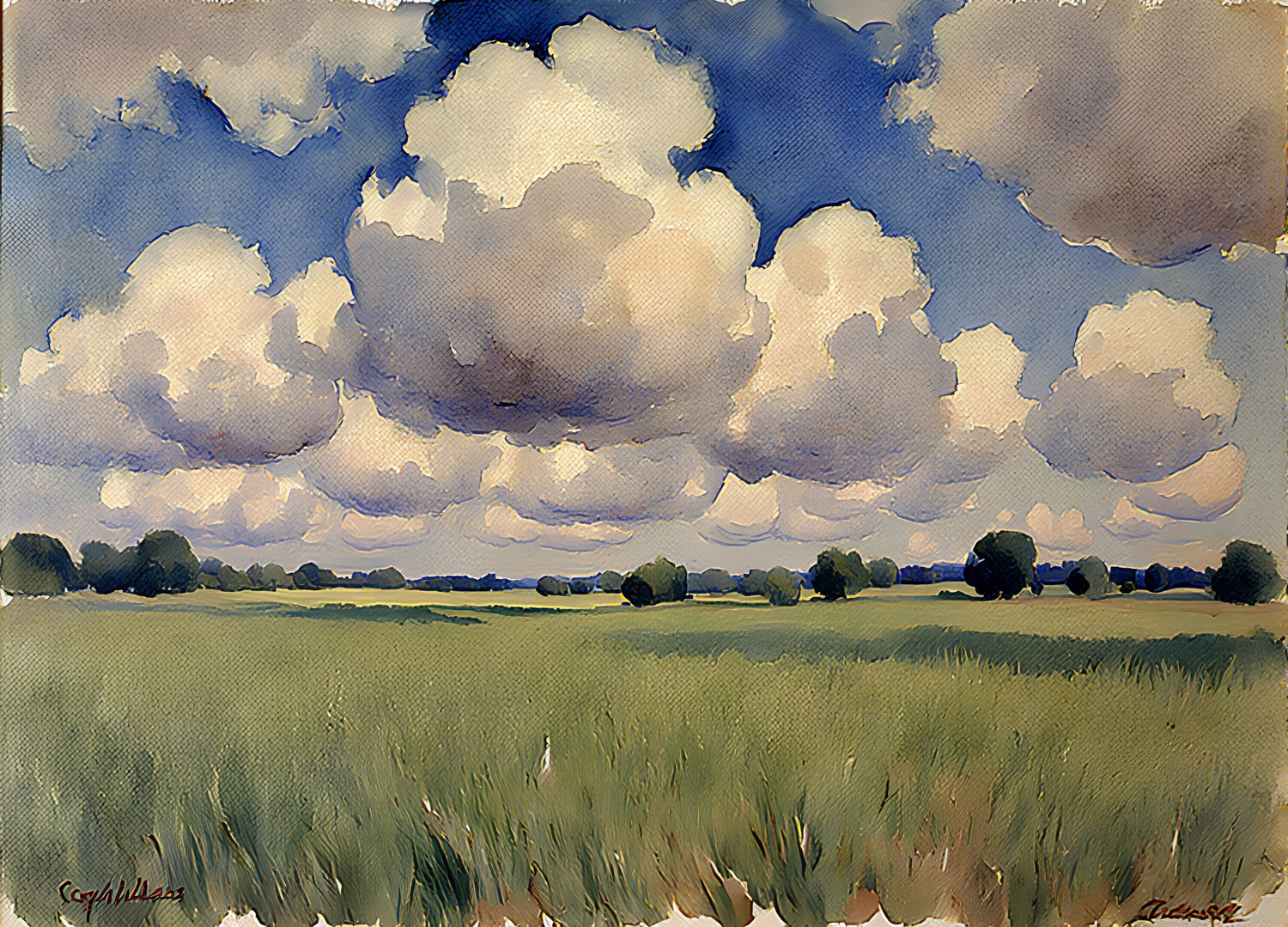 草原の上に丸い雲が浮かんでいます。
