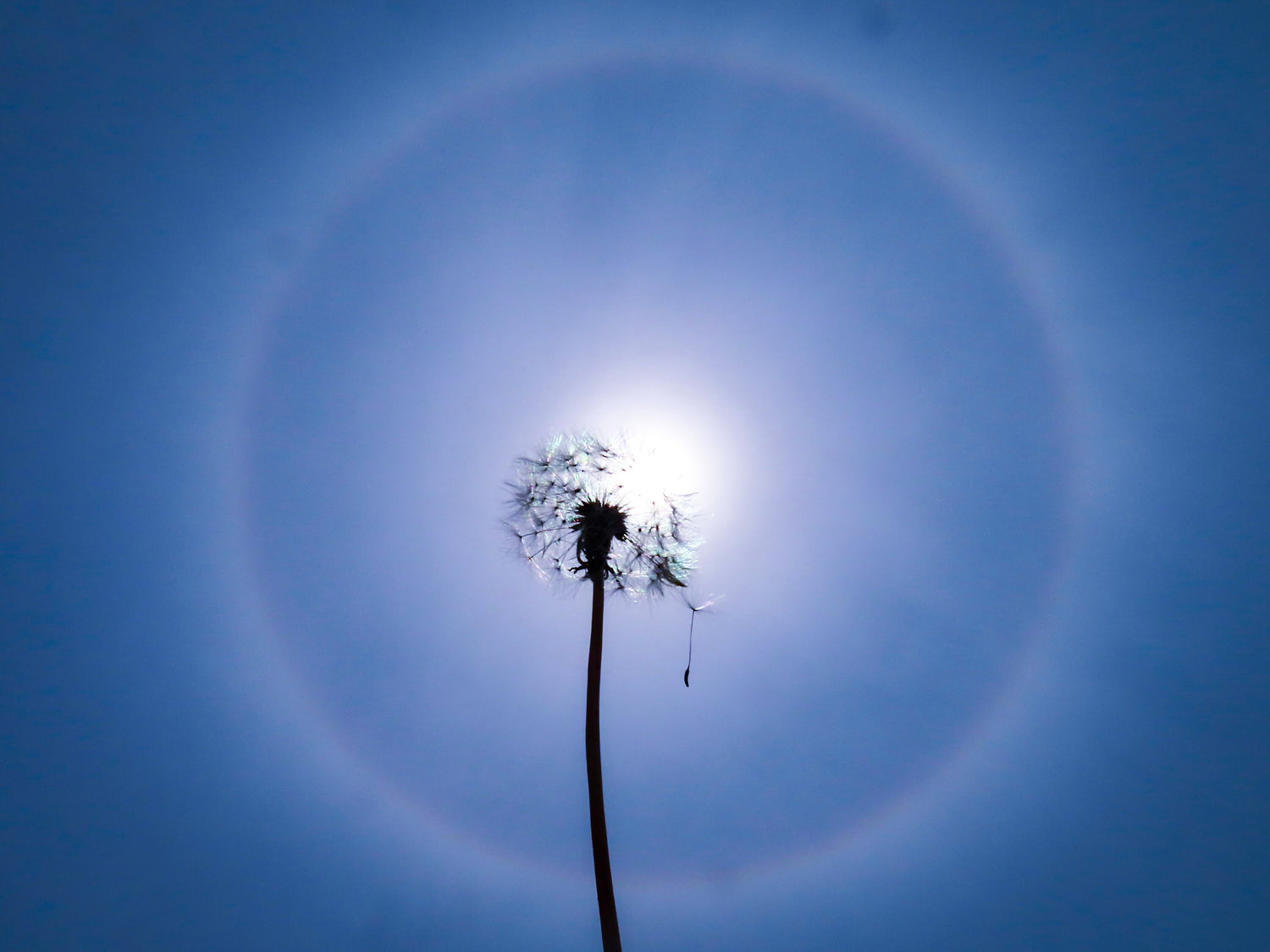 タンポポの綿毛と太陽のハロ(日暈)が重なった瞬間。