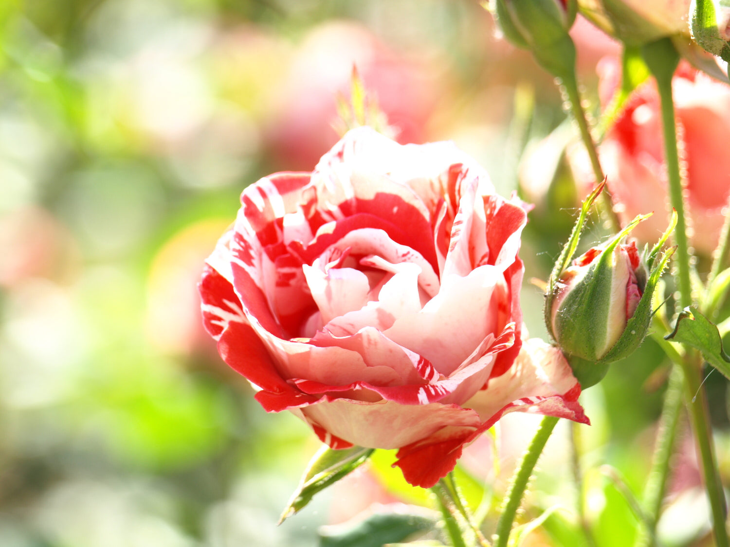 その一輪のバラは、光に抱かれながらも力強く咲き誇り、