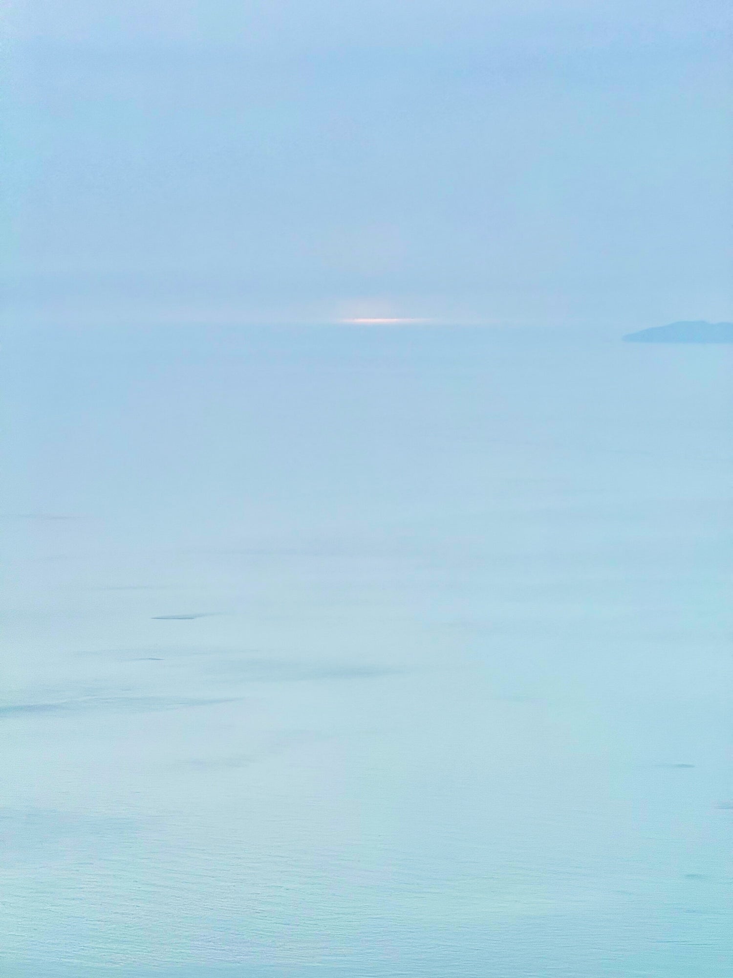 空も海も薄ぼんやりと明るい青と黄色を混ぜたような色。