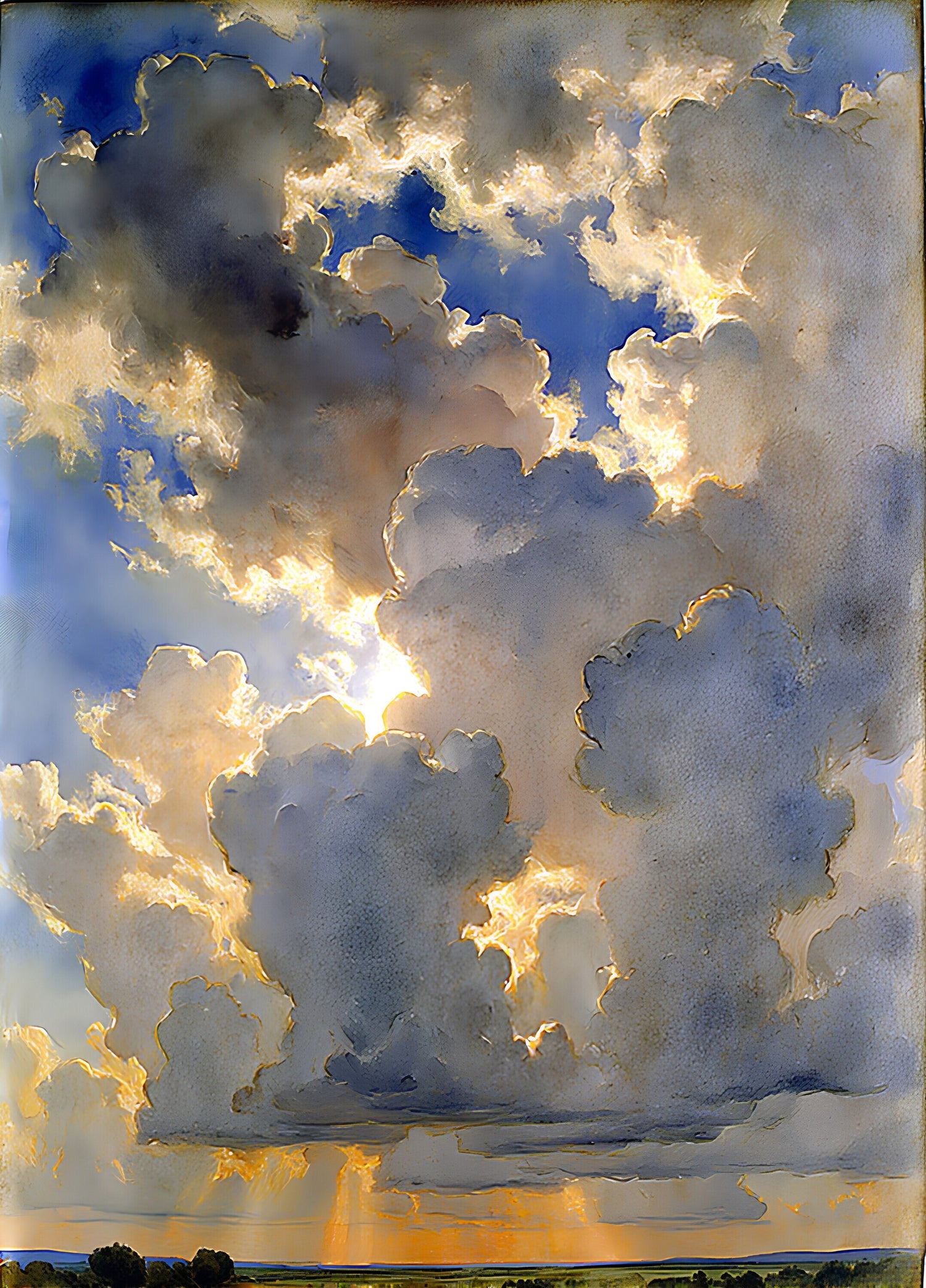 初夏の田園地帯に発生した大きな入道雲が日を遮っています。