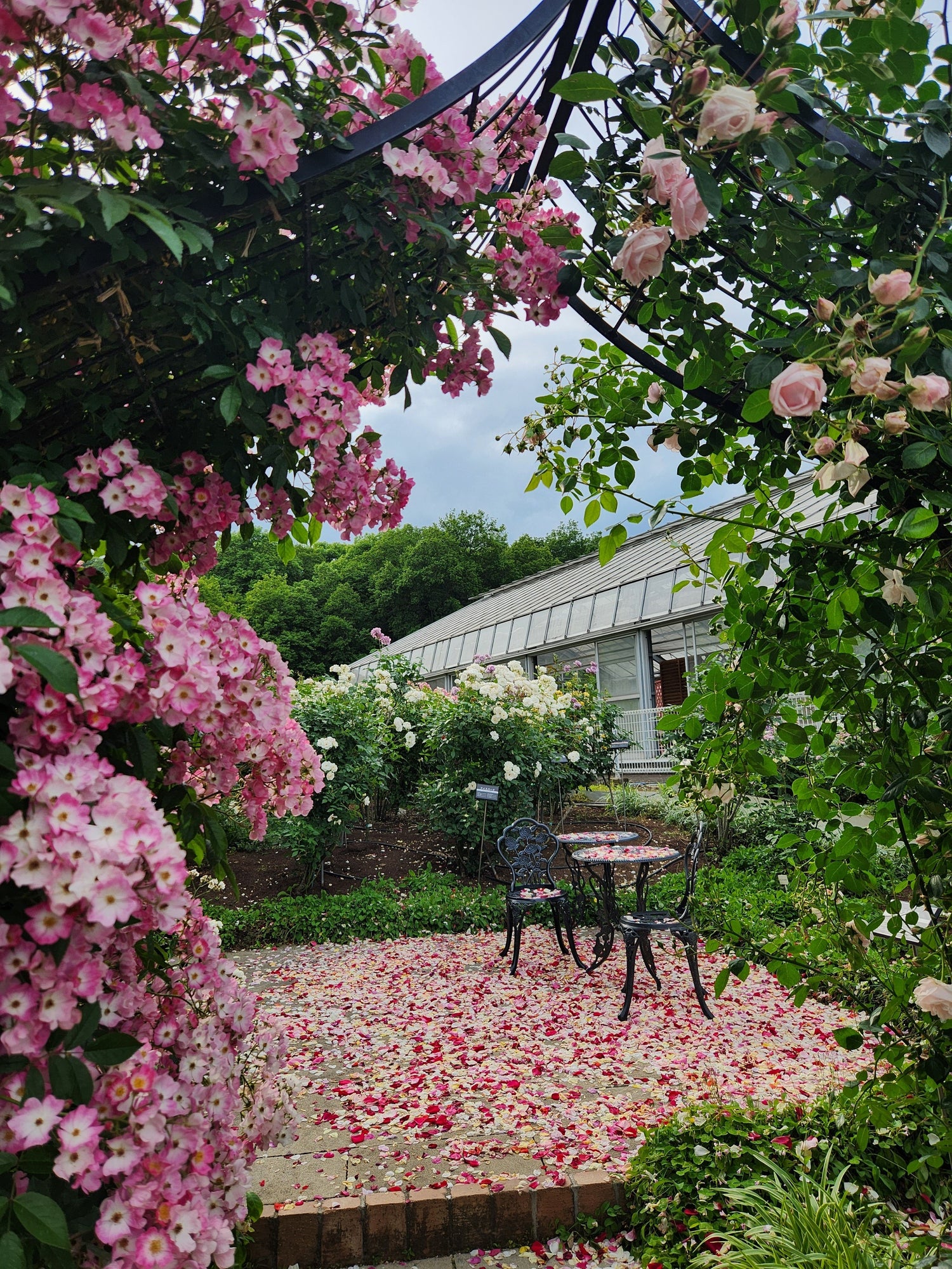 とちぎ花センターのバラ園。雨上がりにバラの花びらが地面に落ちて、まるでバラの絨毯を敷き詰めたように綺麗でした。