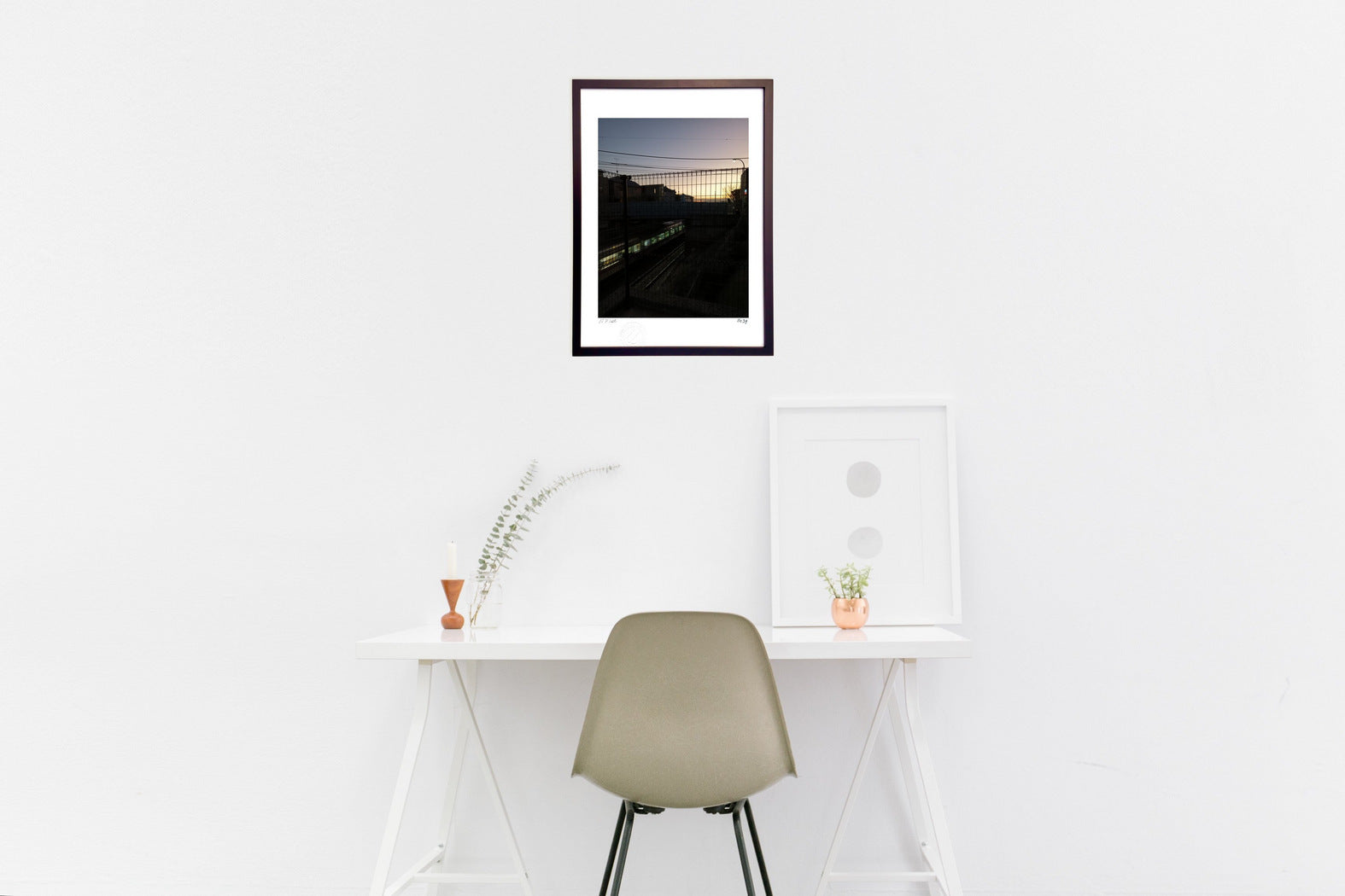 夕日とそこへ向かって走る電車。お互いの光のコントラストが日本の日常を表してくれている、まさに"人生(the life)"。