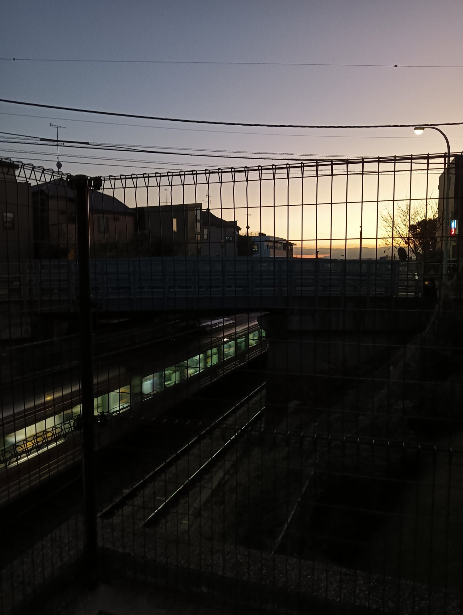 1日が終わろうとしていることを告げる夕日と今日1日頑張った人々を乗せた電車、それぞれが放つ光が私の心を惹きつけた。