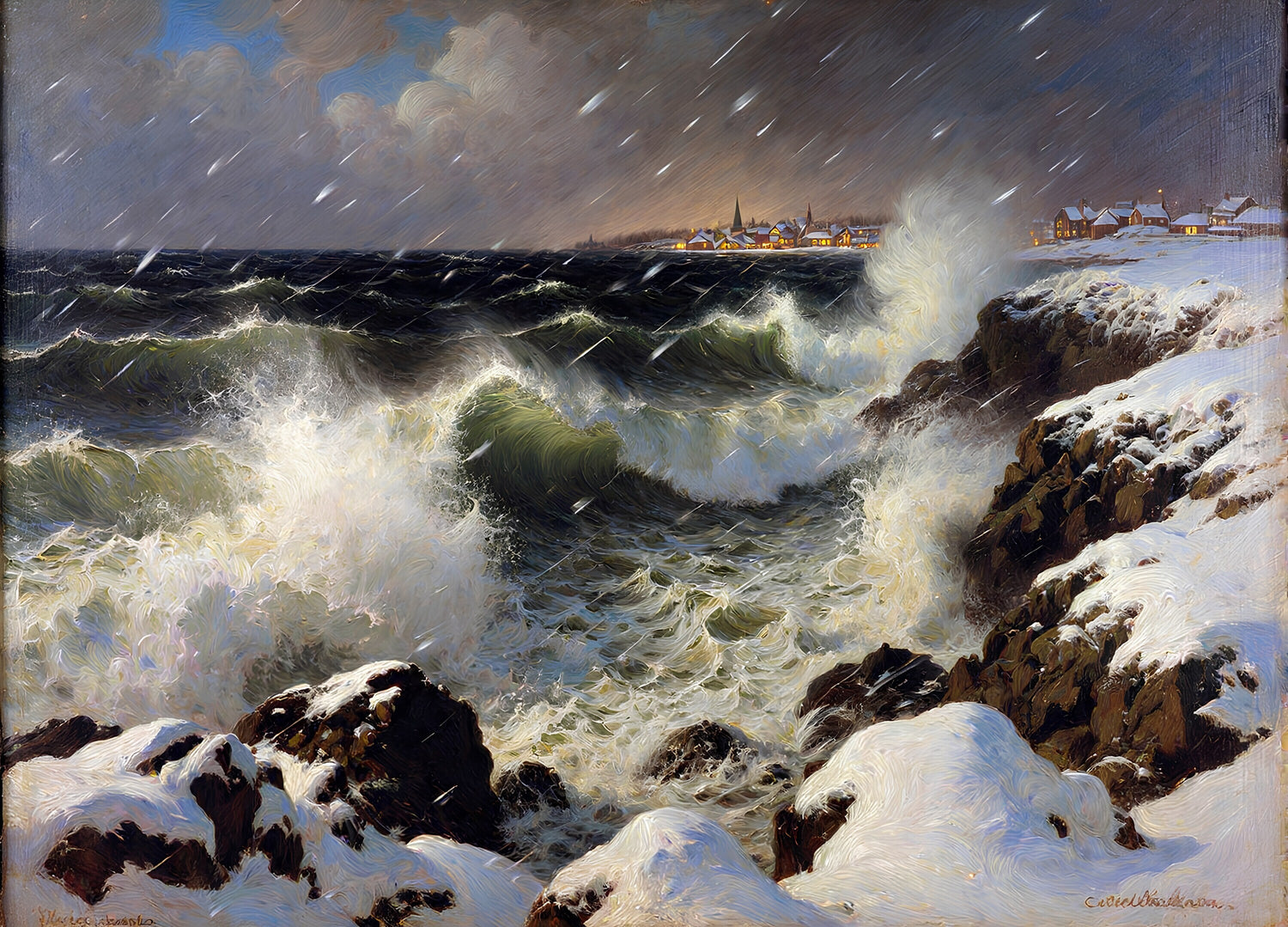 激しい吹雪が暗い海を横殴りに吹き抜ける。
