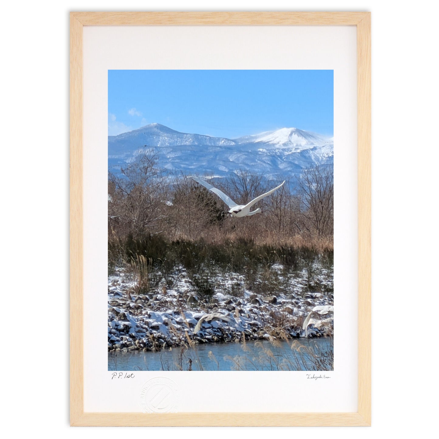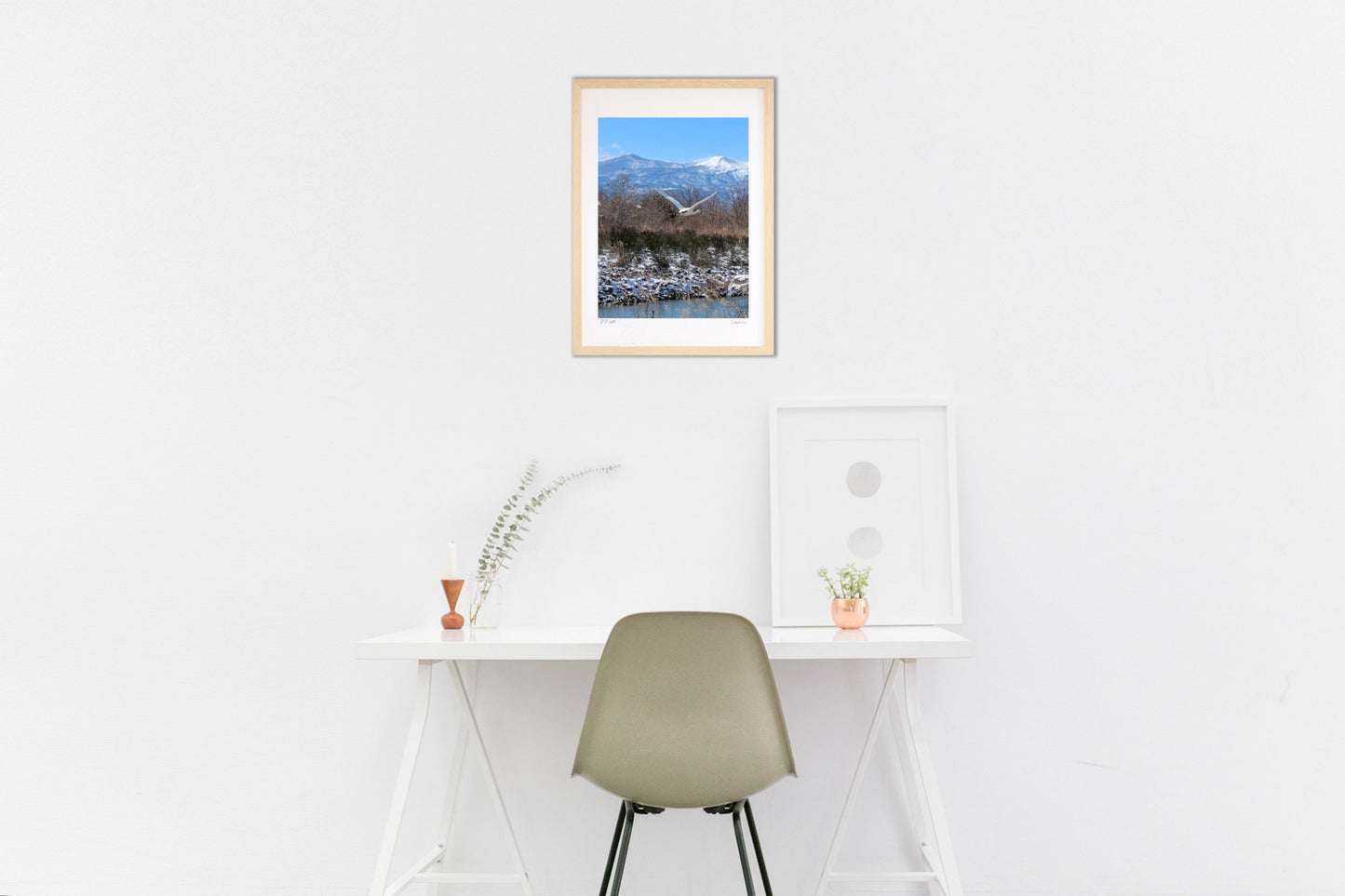 あゆわらの企画・制作・販売の作品。 画用紙のような質感の高級アート紙を採用。 発色が豊かなので繊細な色を忠実に再現。 印画紙ではないので、絵なのか写真なのか迷う不思議な印象です。 紙に光沢がなく、光を反射しないので、 蛍光灯の光で作品が見えづらくなることもありません。 色の再現性もこだわりました。 色調整は、最新技術で厳密に行うことが出来ます。正確に色を再現できるデジタル印刷で一枚一枚制作。 品質をチェックし、合格したものにあゆわらのエンボス印を入れて完成となります。