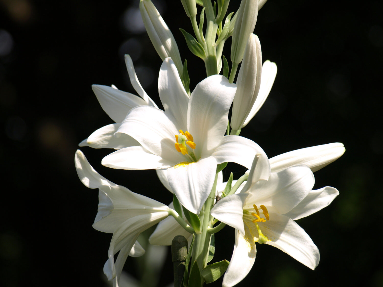深い黒の中に、浮かび上がるように咲く白いユリ。
