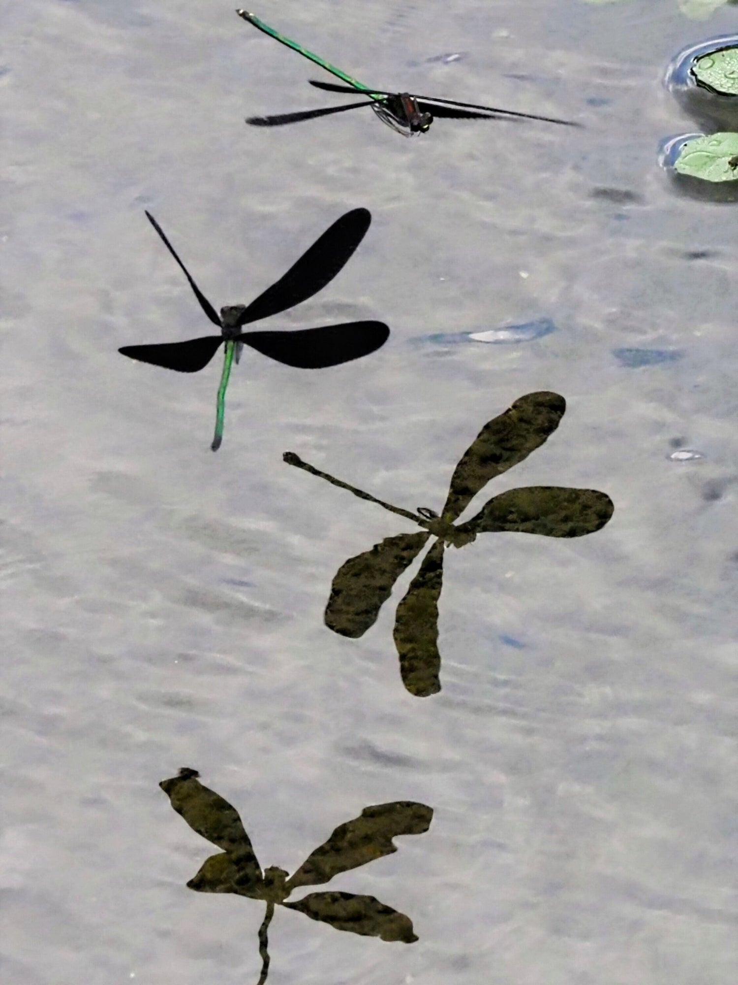 2匹のトンボの影が水面に映り込み4匹に見える写真になりました。